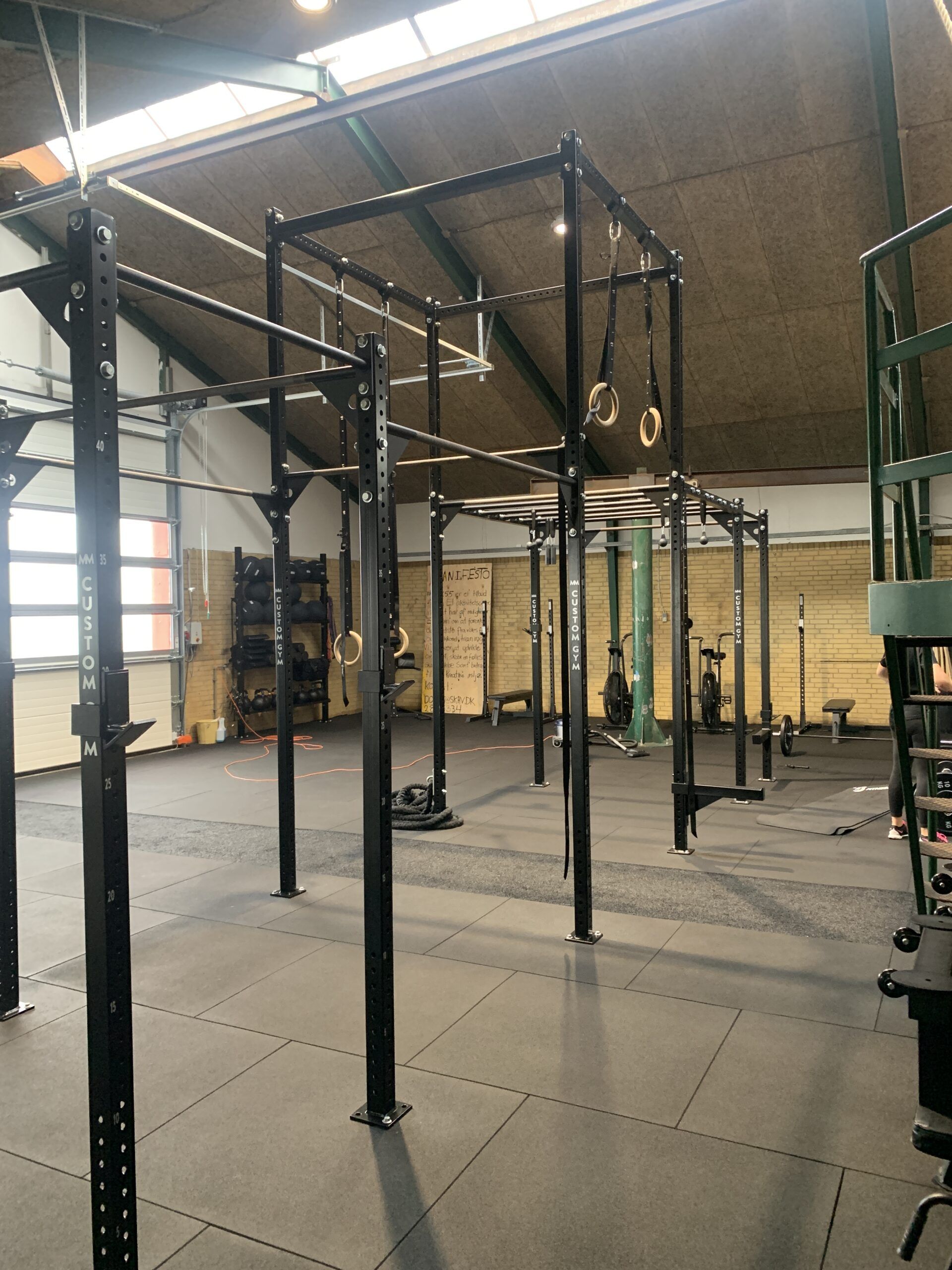 Hos DOK55 i Løgstør har vi hjulpet med at etablere et funktionelt træningsmiljø, hvor der er fokus på fri bevægelse, styrke og variation. Træningsområdet er udstyret med et stort custom rig, der giver mulighed for alt fra pull-ups og ringtræning til rebklatring og funktionelle øvelser.