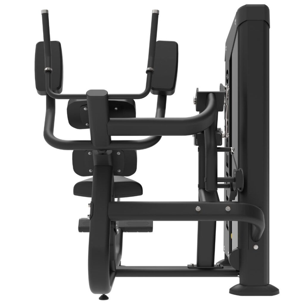 Vores Fitness360 Abdominal – Pin Loaded er fra vores pin loaded serie, hvor der findes mange forskellige kvalitets styrkemaskiner med påmonteret vægtmagasin at vælge imellem. Serien er udviklet til kommercielt brug og passer ideelt til fitnesscentre/foreninger, haller, skoler, offentlige institutioner, virksomheder, rehab m.m.
