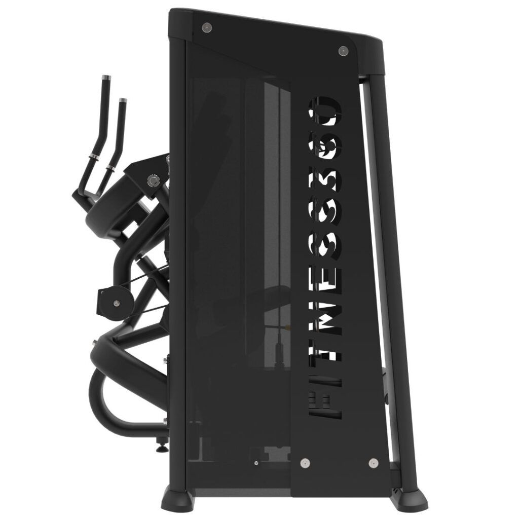 Maskinerne i denne serie har en minimalistisk og stilren “kasse” til vægtmagasinet. Kassen består af mørktonet plexiglas og en stålplade med laserskåret Fitness360 logo. Kassen fremstår således meget “luftig” og giver et eksklusivt udtryk i centeret.