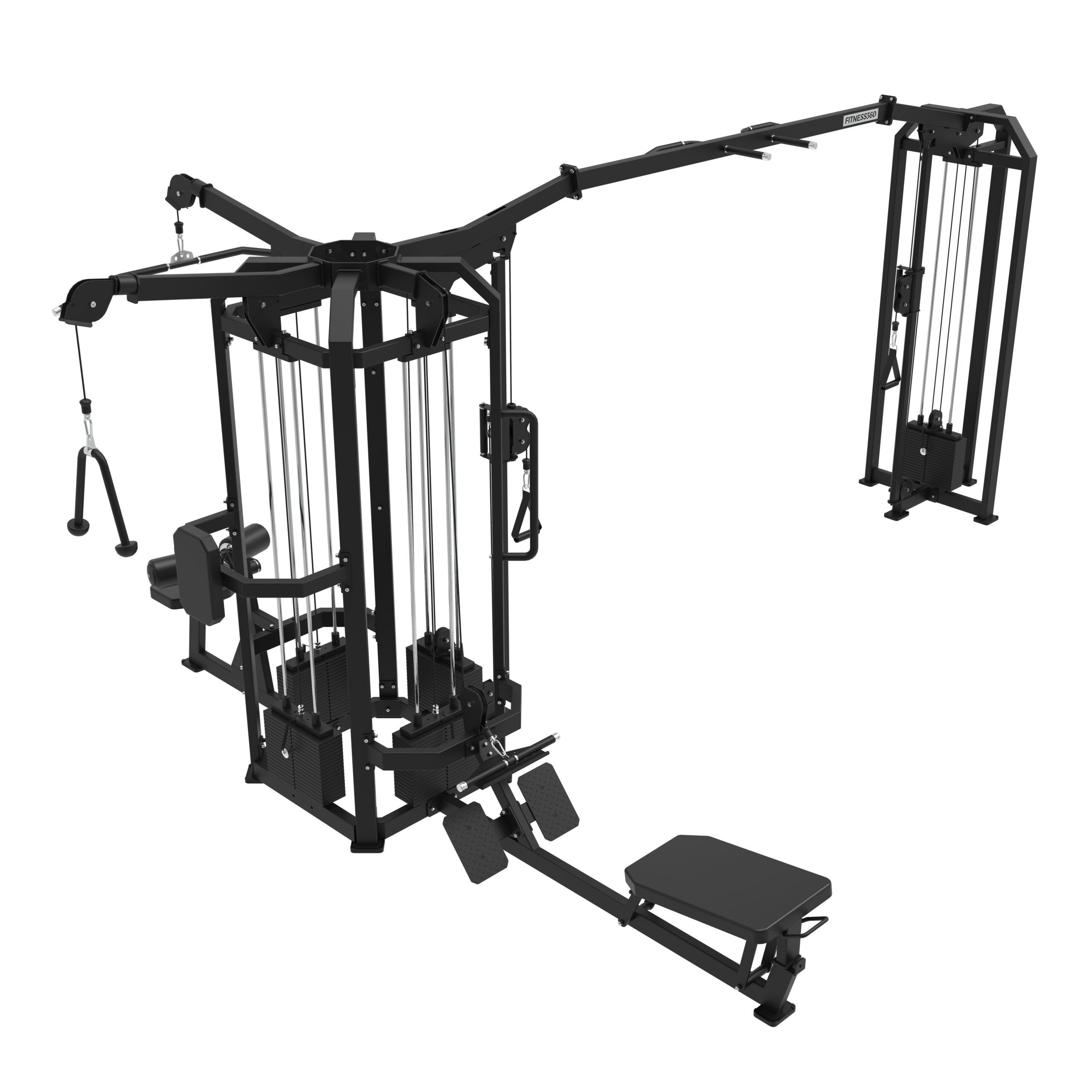 Vores professionelle Cable Station 5 er designet til at imødekomme et bredt udvalg af træningsbehov. Med hele 5 forskellige træningsstationer, er der mulighed for at træne et bredt udvalg af øvelser. Selve kablerne er fremstillet af coated wire, der kan holde til op mod 1400 kg træk, hvilket sikrer både en lang holdbarhed og tilstrækkelig sikkerhed under intensiv brug. Stationen er udstyret med justerbare lårpuder, fodstøtter med antislip, en polstret pude til rygstøtte samt to støttehåndtag, der sikrer komfort og stabilitet under træningen.