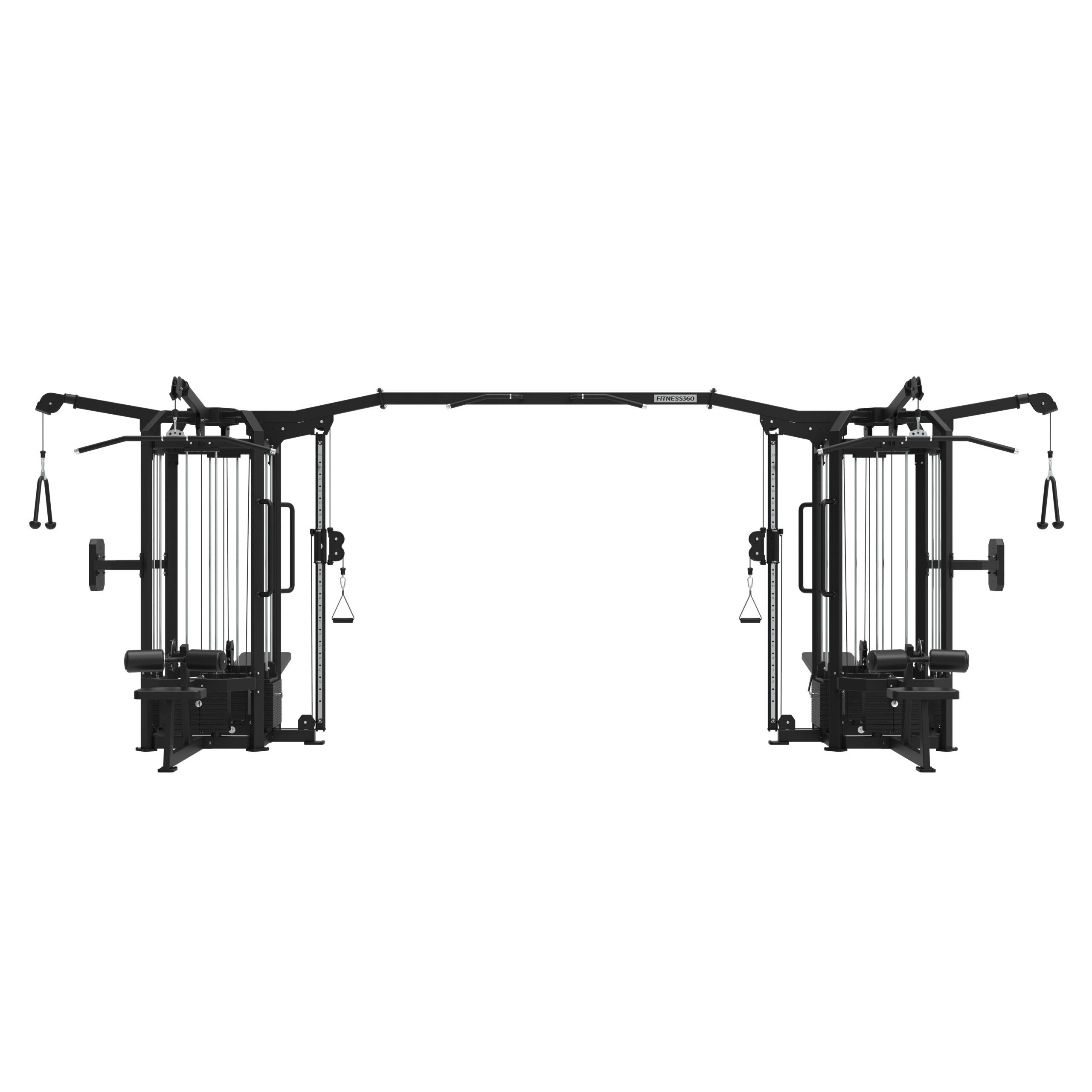 Vores professionelle Cable Station 8 er designet til at imødekomme et bredt udvalg af træningsbehov. Med hele 8 forskellige træningsstationer, er der mulighed for at træne et bredt udvalg af øvelser. Selve kablerne er fremstillet af coated wire, der kan holde til op mod 1400 kg træk, hvilket sikrer både en lang holdbarhed og tilstrækkelig sikkerhed under intensiv brug. Stationen er udstyret med justerbare lårpuder, fodstøtter med antislip, en polstret pude til rygstøtte samt fire støttehåndtag, der sikrer komfort og stabilitet under træningen.