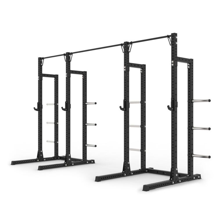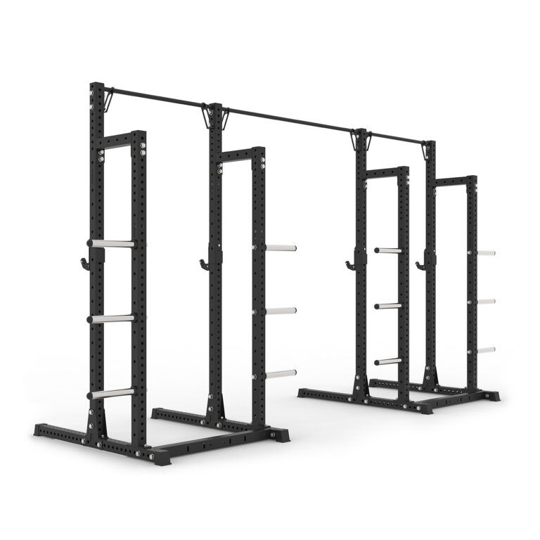 I denne pakkeløsning får du 2 stk. base på 160×125 cm, 4 stk. stolper på 216 cm, 4 stk. stolper på 256 cm, 4 stk. crossbars på 42,5 cm, 2 stk. forstærket pull up bar på 108 cm, 1 stk. forstærket pull up bar på 180 cm, 4 sæt samlingsplader, 12 stk. vægtskive pins og 2 sæt j-hooks, samt nødvendige montagebolte til samling.