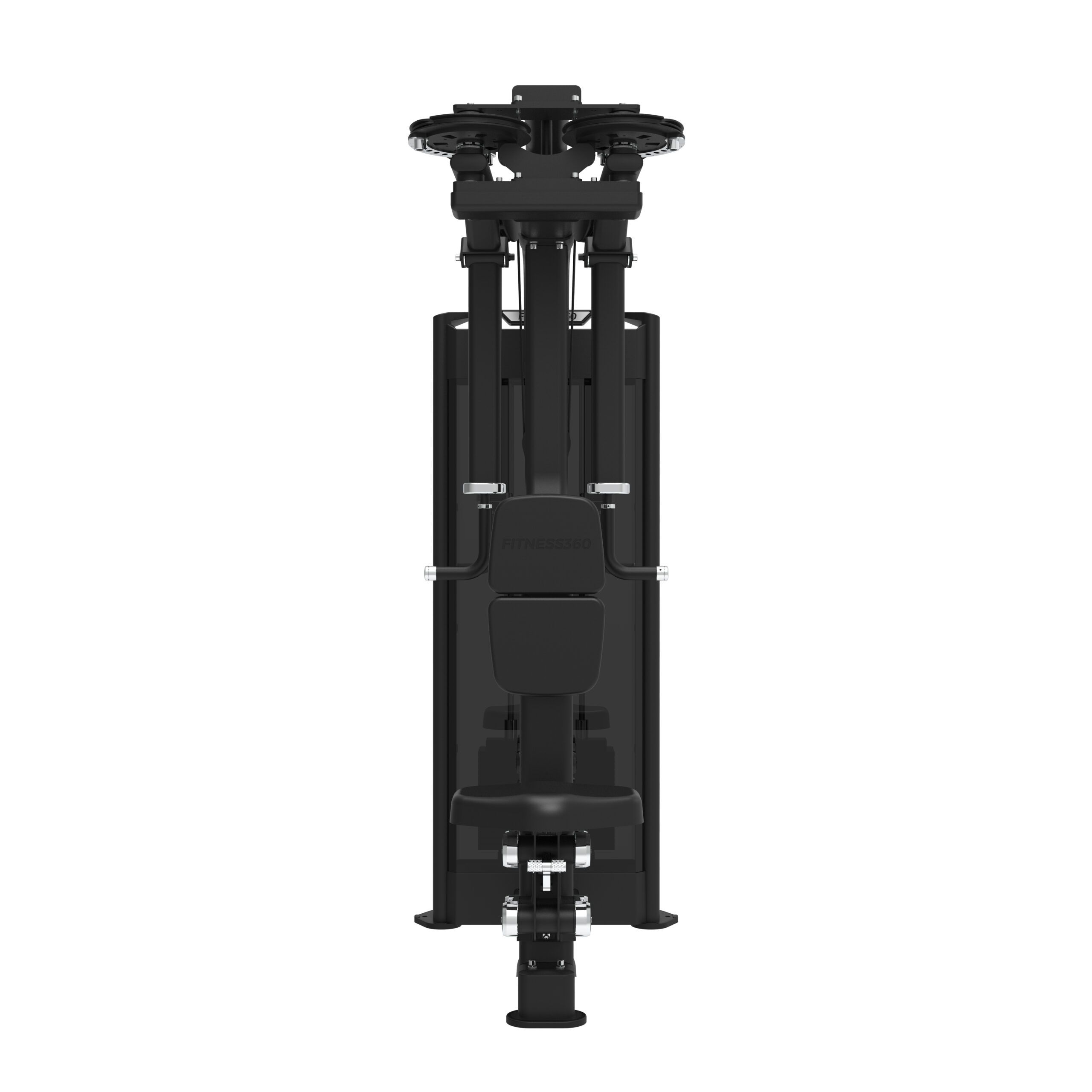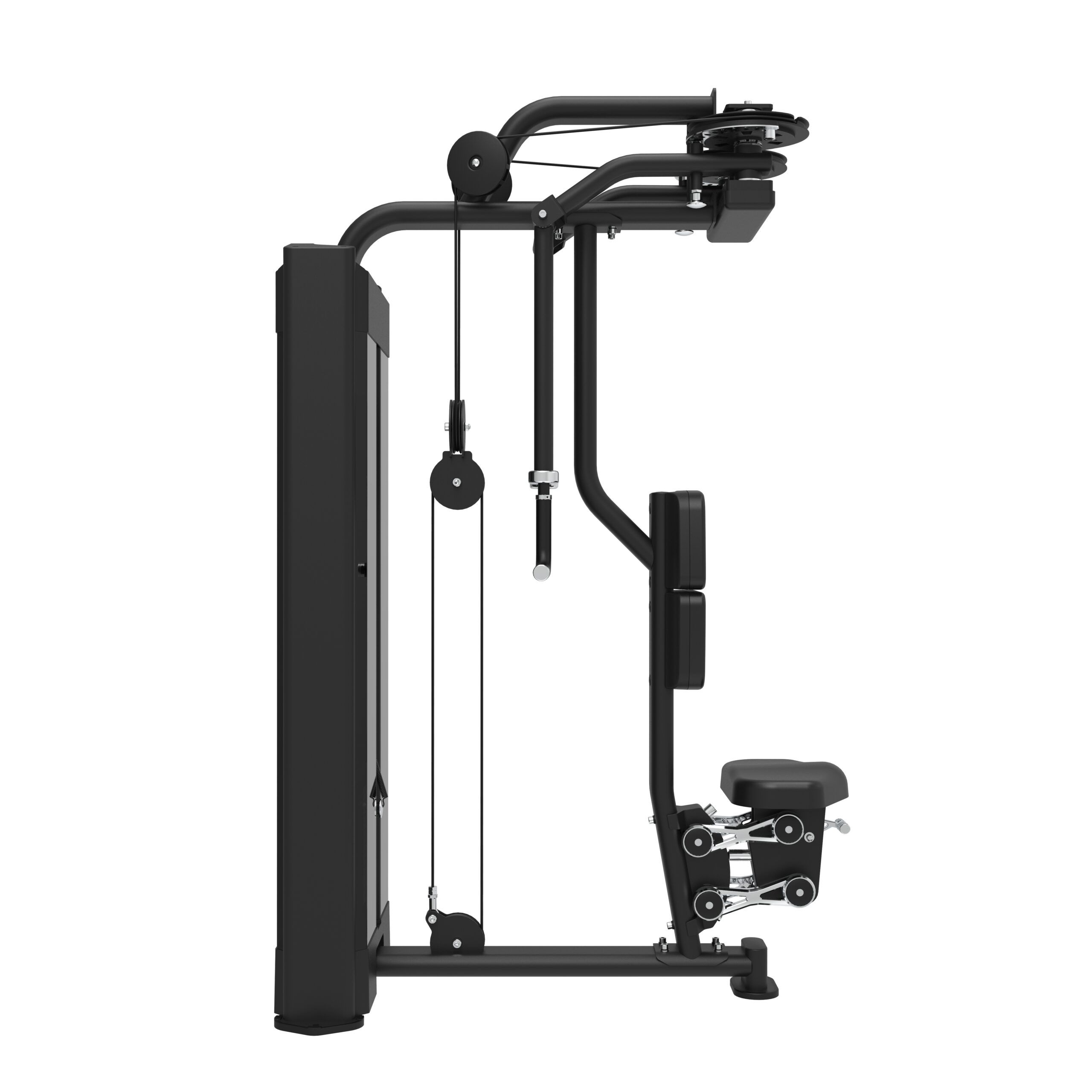- Fleksibilitet: Maskinens justerbare arme gør det muligt både at træne bagskulder-& brystmuskulaturen i én enkelt maskine. Dette sparer både plads i træningsområdet og giver brugeren mulighed for at skifte mellem øvelser, uden at skulle skifte maskine.