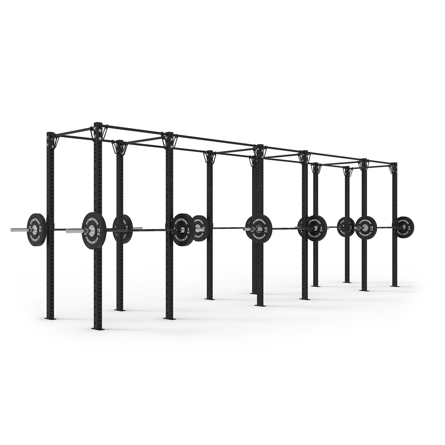 I denne fritstående konstruktionsserie giver vi dig flere standard varianter. Som udgangspunkt anbefaler vi 1 squat station for hver bruger som skal bruge stativet samtidig. Dette er en tommelfingerregel i forhold til plads mellem brugerne i forskellige øvelser som squat, dip, landmine core træning, kast af wallballs til target m.m.. Skal stativer kun bruges til simple pull up øvelser, TRX træning eller lignende, kan man derimod gøre brug af størstedelen af pull up barene samtidig, her vil man så tage udgangspunkt i 1 bruger pr. pull up bar. Har du brug for flere stationer, kan du se udvalget for flere fritstående varianter her