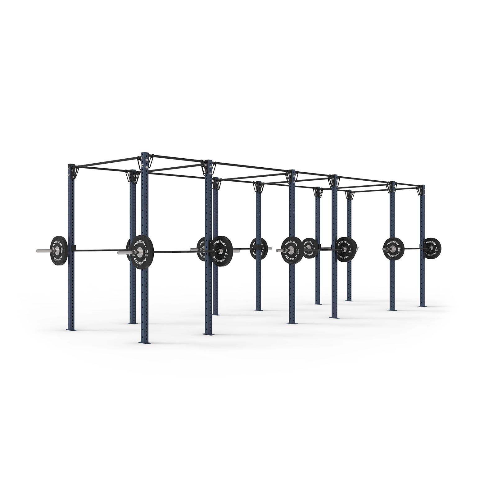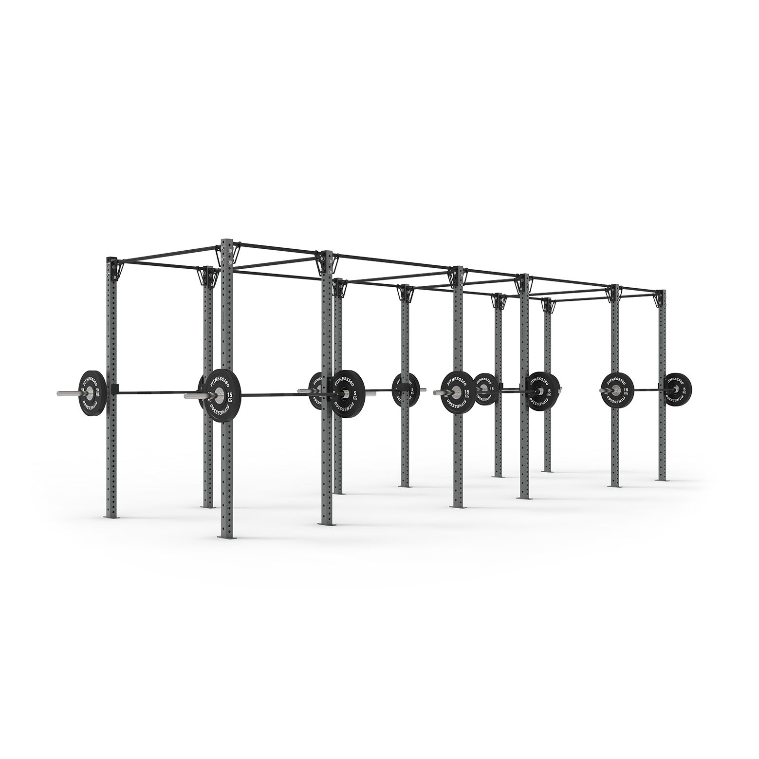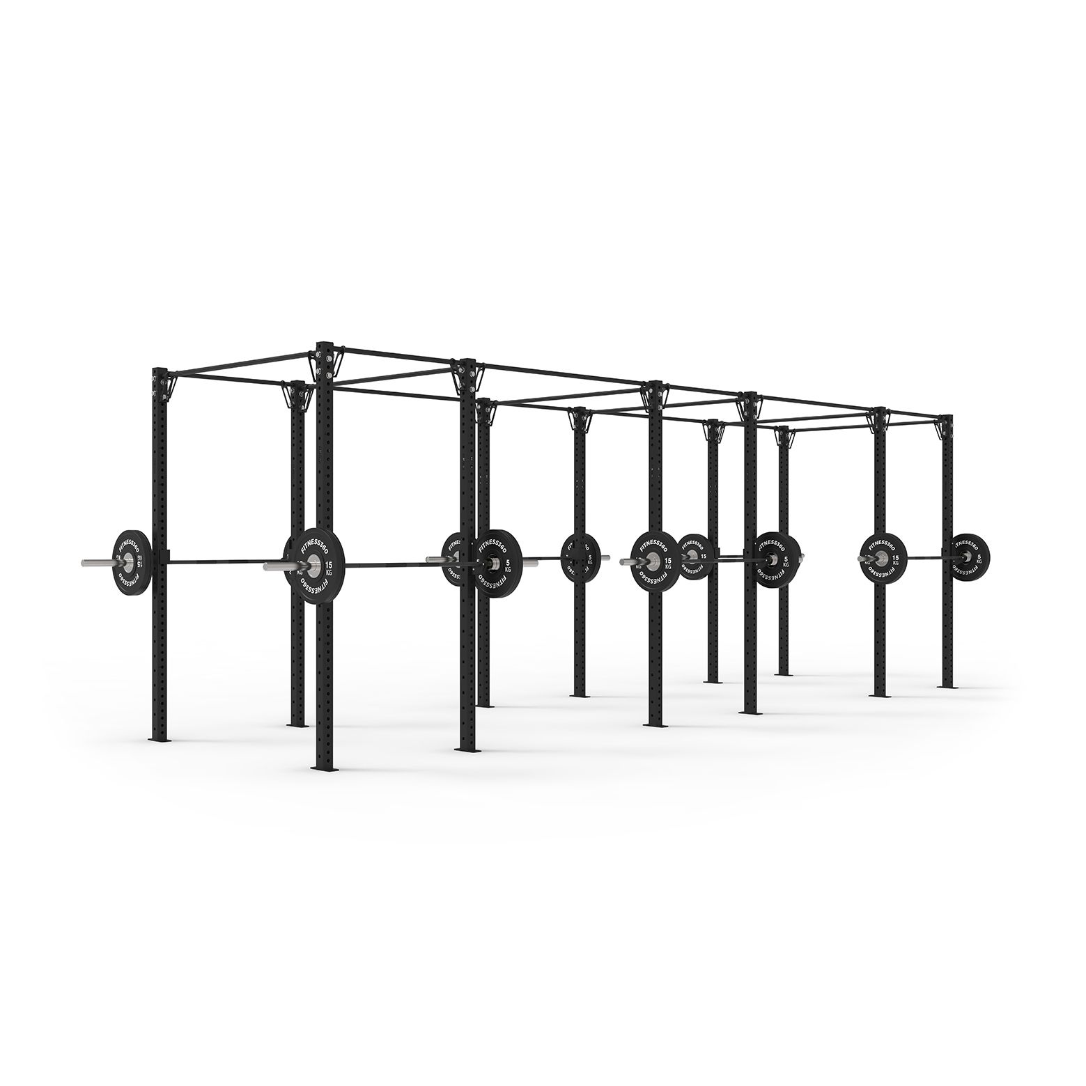 Dette fritstående rig består af 12 stk. stolper på 256 cm, 10 stk. pull up bars på 180 cm og 6 stk. pull up bars på 108 cm. Stolperne skal fastgøres i gulvet.