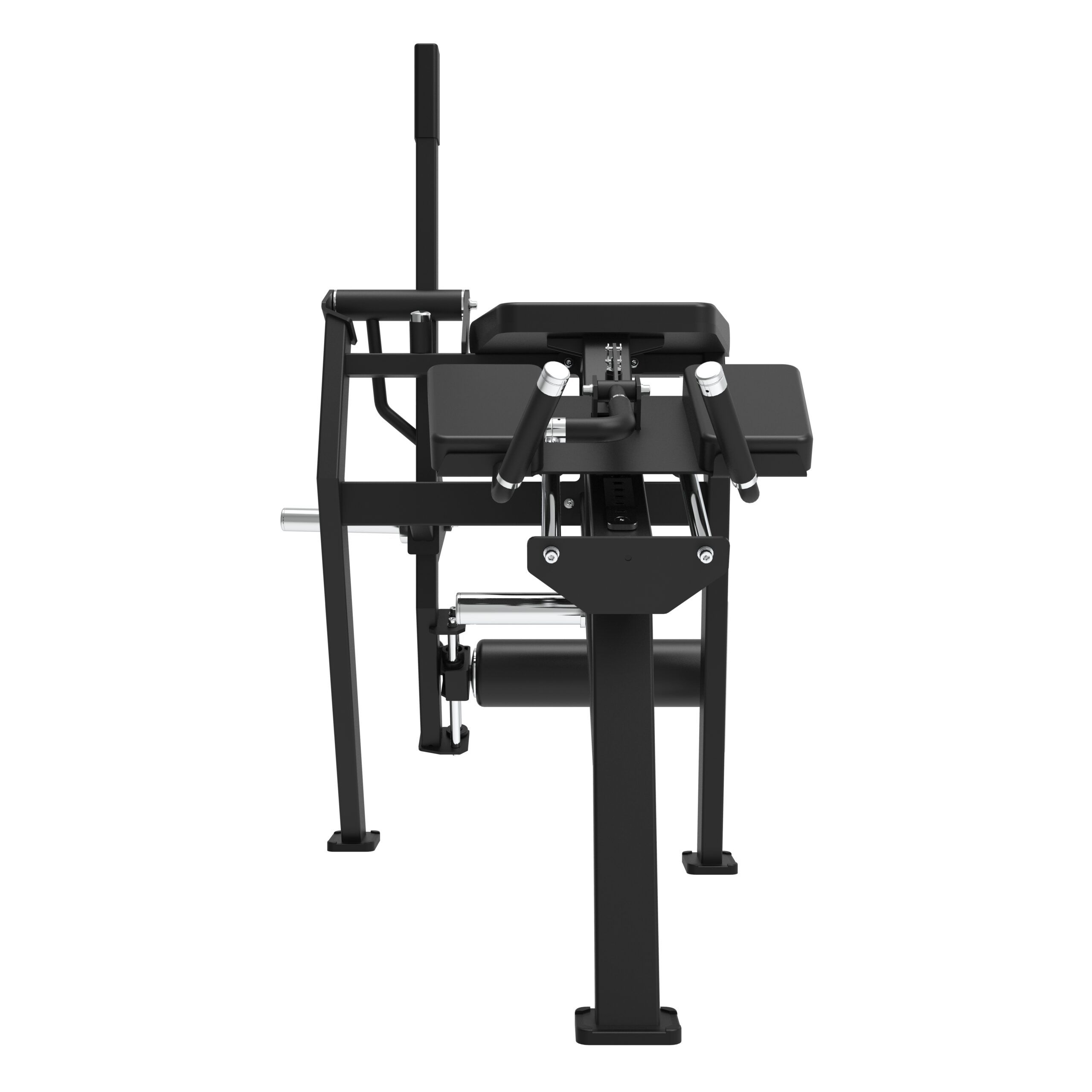 Vores professionelle Glute maskine er designet til effektivt at målrette balle- & baglårsmusklerne i en liggende position. Maskinen er udstyret med en justerbar rullepude, samt justerbar håndstøtte, hvilket giver brugeren mulighed for let at indstille startpositionen for øvelsen. Maskinen har én “load sleeve” på armen til belastning med alle Ø50 mm vægtskiver. Der er desuden monteret én vægtskive pin på den side af maskinen til opbevaring af vægtskiver.