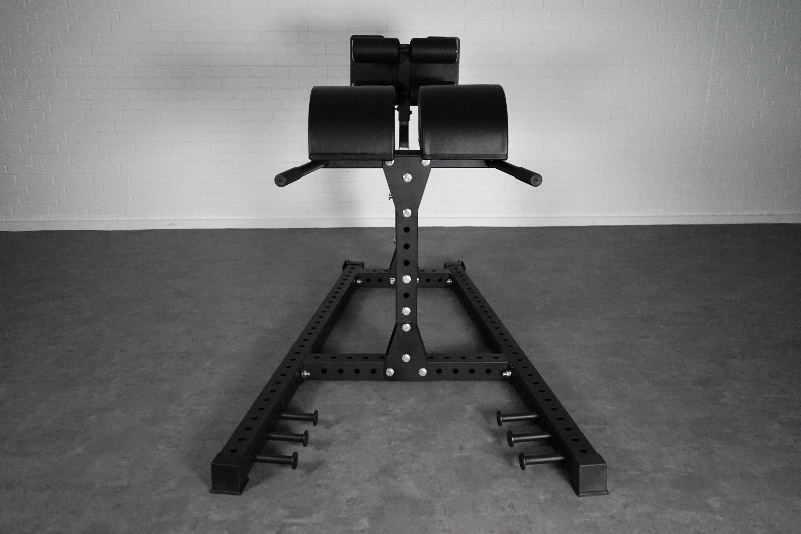 Vores GHD er konstrureret i vores karakteristiske 75×75 mm stolper, der sikrer en særdeles robust konstruktion. På basekonstruktionen kan du tilføje de 6 elastikpins, hvis du ønsker, og derved træne modstandstræning på bænken også.