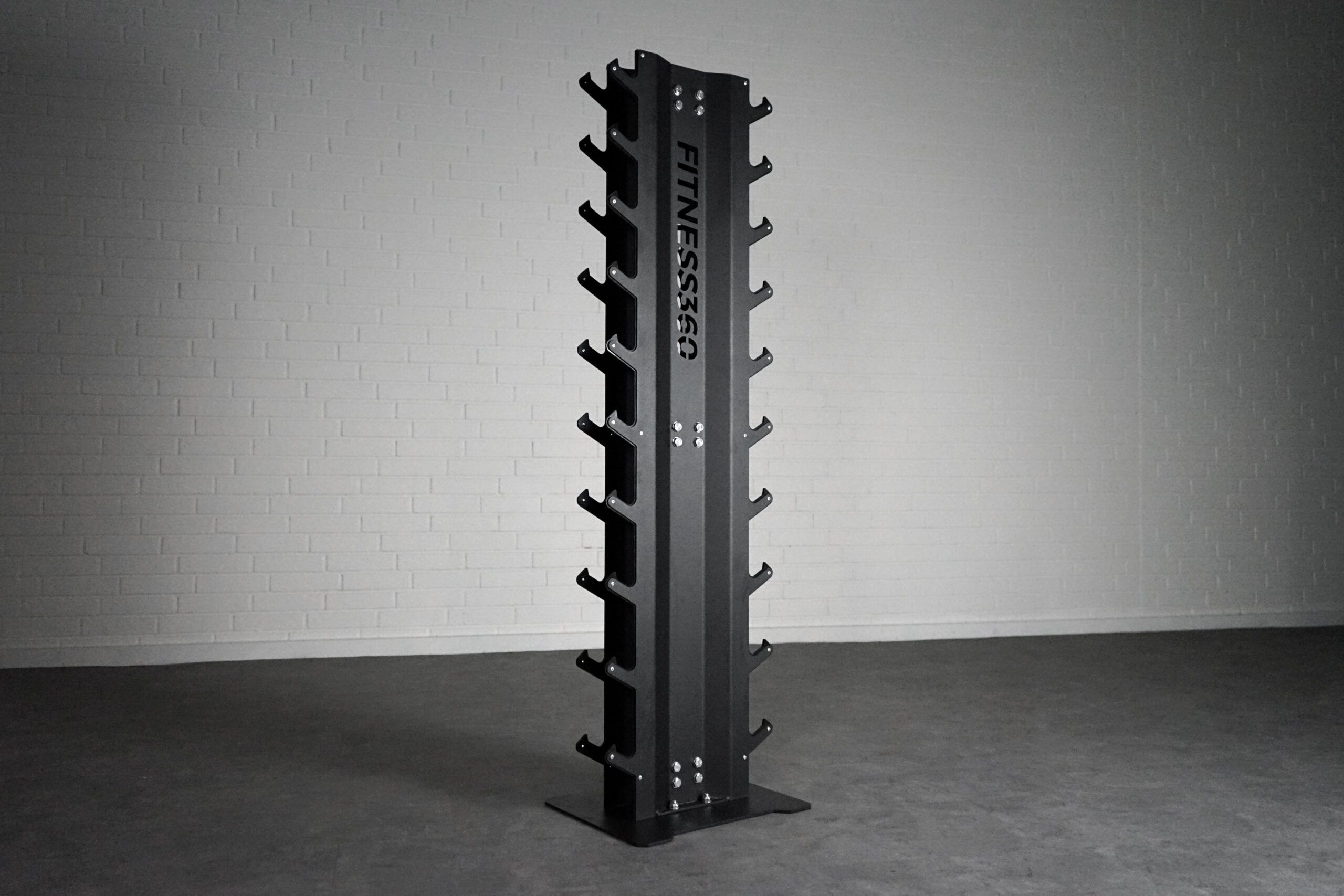 Håndvægte stativ med plads til opbevaring af mindre håndvægte/dumbbells. En pladsbesparende løsning der er ideel til både home gyms og kommercielle lokationer. Hjælp dig selv (eller dine medlemmer) med at holde orden på håndvægtene, ved at fremvise udvalget af dumbbells på en pæn og overskuelig måde. Det er træls for alle, når håndvægte ligger og flyder på gulvet, og det er uoverskueligt at finde den rigtige. Du vil med garanti få stor glæde af dette håndvægte stativ! Tårnet har en solid base, og føles meget eksklusiv i sit udseende og kvalitet. Hver “hylde” til håndvægtene skråner naturligvis indad, så håndvægtene forbliver i tårnet.
