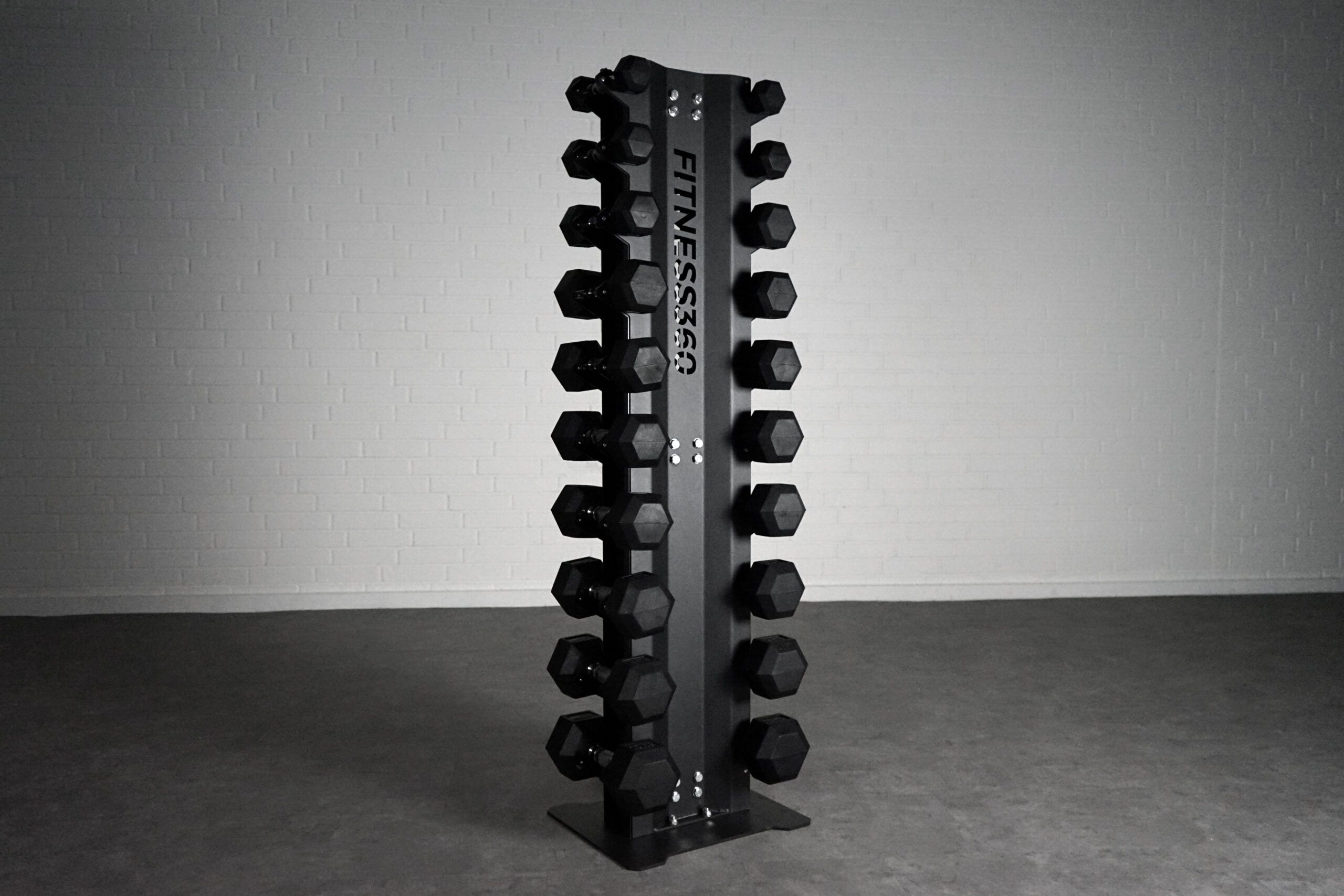 Der er cirka plads til 10 sæt håndvægte, alt afhængig af størrelsen på håndvægtene naturligvis. Stativet egner sig ideelt til håndvægte fra 1 kg til 10 kg.