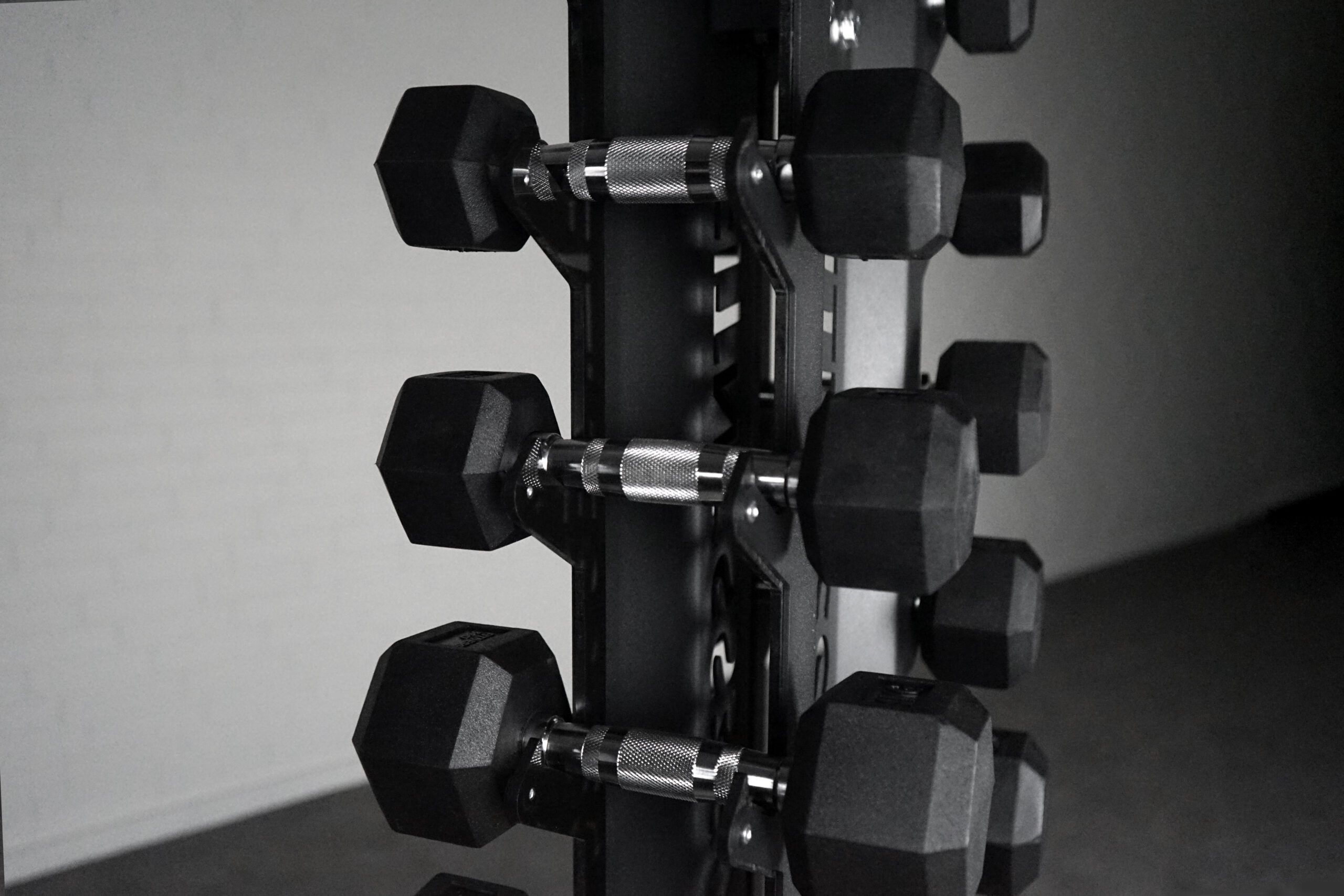 Vores opbevaringsstativ til mindre håndvægte er overskuelig for enhver og nemme at tage ind og ud af sine holdere. Der er massere af luft mellem holderne både i højden og i bredden.