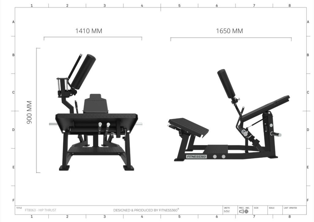 Stellet er produceret i en solid stålkonstruktion med et laserskåret FITNESS360-logo. Sæderne er udført i et robust materiale med varmetrykt FITNESS360-logo. Maskinerne i denne serie er uden vægtmagasin, der er derimod påført nogle “load sleeves”, som giver brugeren fri mulighed til at vælge belastningen med vægtskiver.