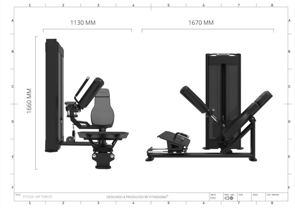 Vores professionelle Hip Thrust maskine er designet til effektiv af målrette balde- og baglårsmusklen, i en liggende position. Maskinen er udstyret med en skridsikker justerbar platform, hvor fødderne placeres. Ryglænet er tiltet og følger brugerens bevægelse under øvelsen, for at sikre korrekt form og komfort. Rullepuden er designet til at give komfort til hofterne og kan justeres i højden, så den tilpasses den enkelte bruger. Maskinen har et praktisk håndtag over rullepuden, hvor hænderne placeres for at give ekstra stabilitet og støtte under træningen. Denne funktion gør det samtidig lettere at komme ind og ud af maskinen, da håndtaget også benyttes til at løfte eller sænke puden.
