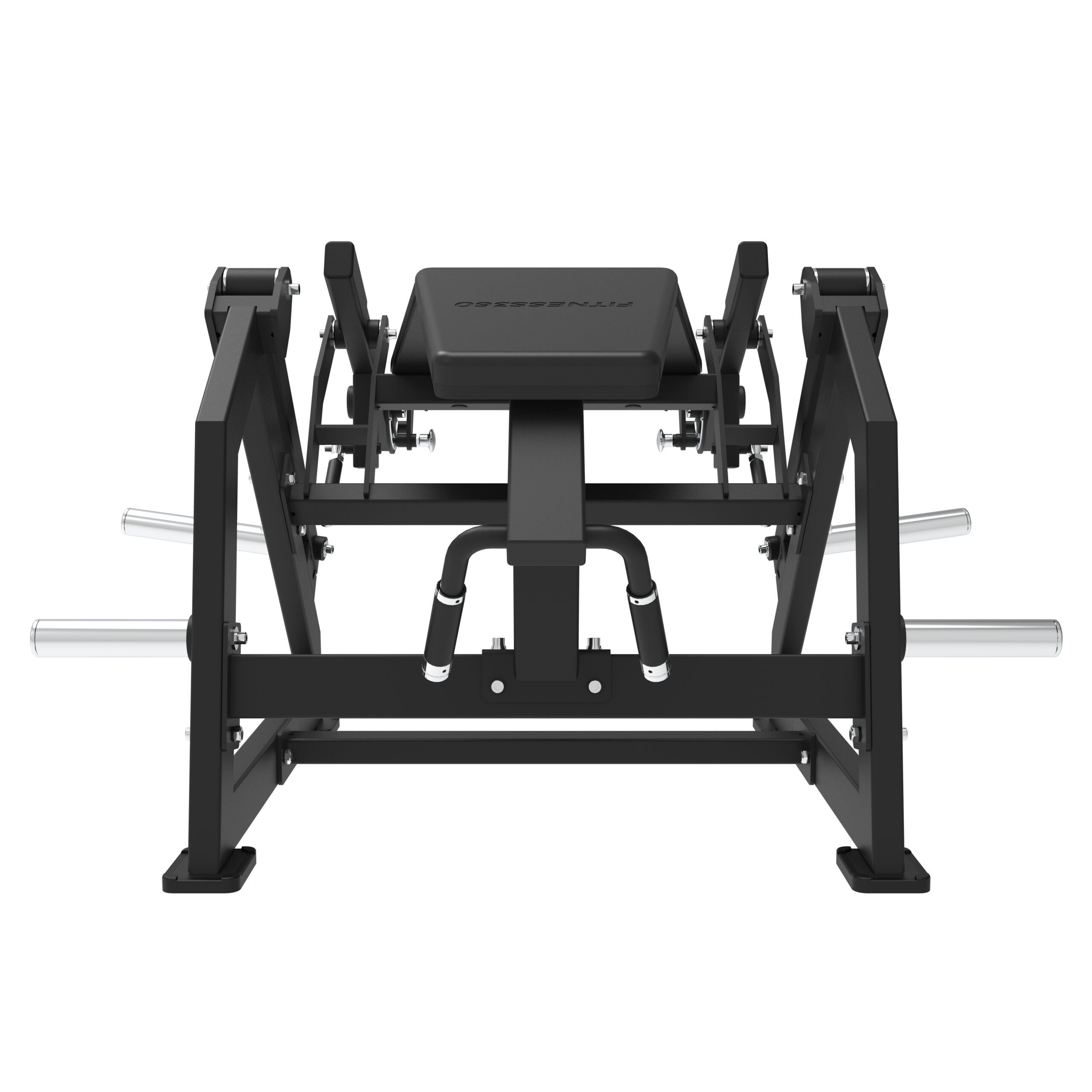 Stellet er produceret i en solid stålkonstruktion med et laserskåret FITNESS360-logo. Sæderne er udført i et robust materiale med varmetrykt FITNESS360-logo. Maskinerne i denne serie er uden vægtmagasin, der er derimod påført nogle “load sleeves”, som giver brugeren fri mulighed til at vælge belastningen med vægtskiver.
