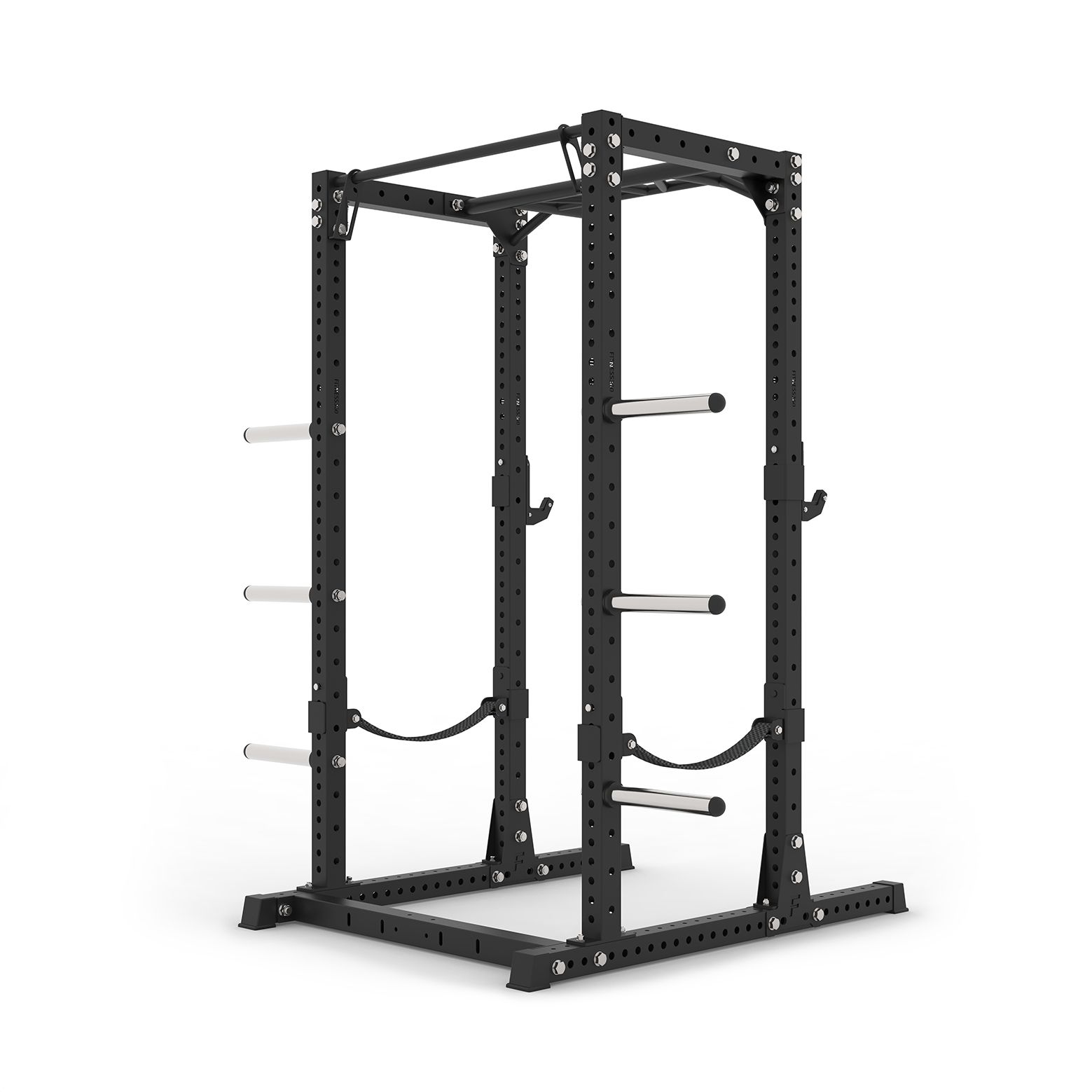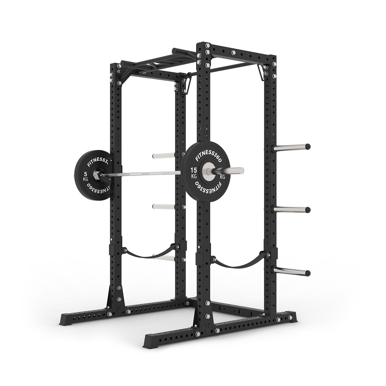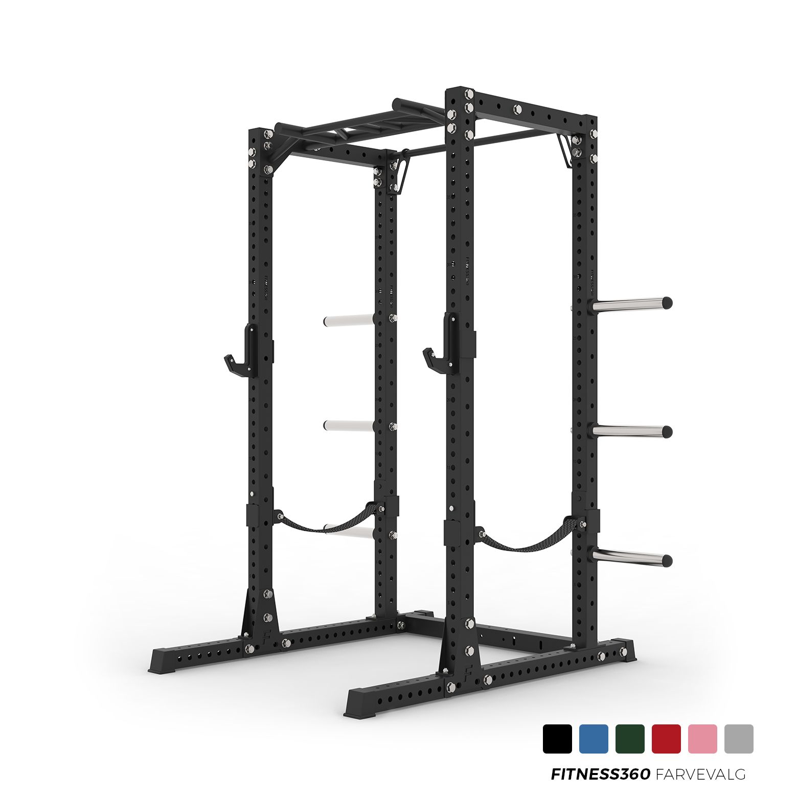Med vores Fitness360 racks får du først og fremmest en stabil og funktionel træningsstation i høj kvalitet. Stolperne er konstrueret i 75×75 mm profiler af 3 mm tyk pulverlakeret stål. Samtidig er vores pull up bars forstærket ved beslagene, således du er sikret en endnu stærkere og mere stabil konstruktion. Vi bruger desuden M20 bolte på alle vores rack- og rig løsninger. Denne størrelse bolte bruges normalvis kun på de største og mest hårdføre rig løsninger.