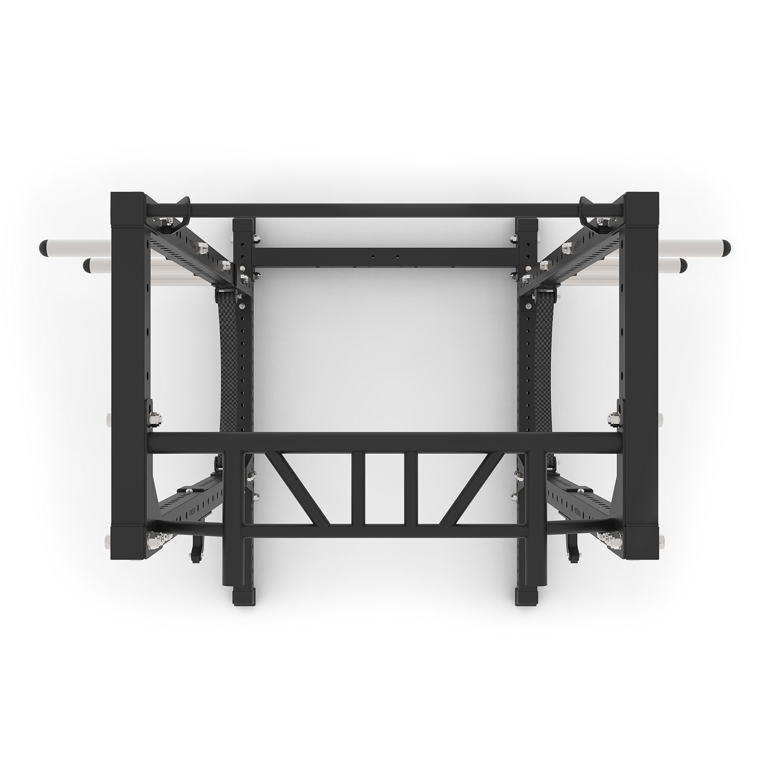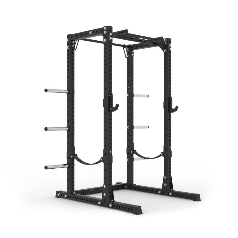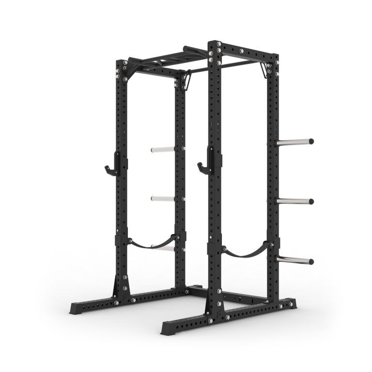 I denne pakkeløsning får du 1 stk base på 160×125 cm, 4 stk. stolper på 216 cm, 1 stk multigrip pull up bar, 1 stk forstærket pull up bar på 108 cm, 2 stk crossbars på 68 cm, 2 sæt samlingsplader, 1 sæt j-hooks, 1 sæt safety spotter straps og 6 stk vægtskive pins, samt nødvendige montagebolte til samling.
