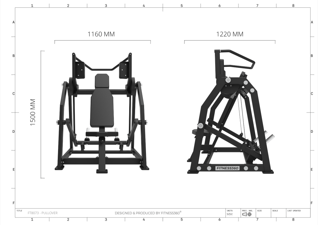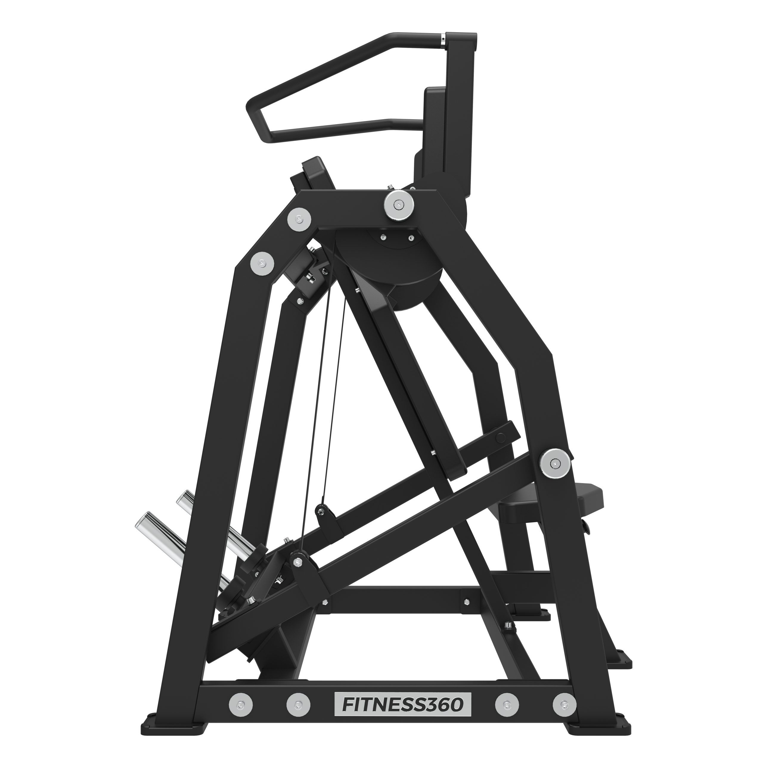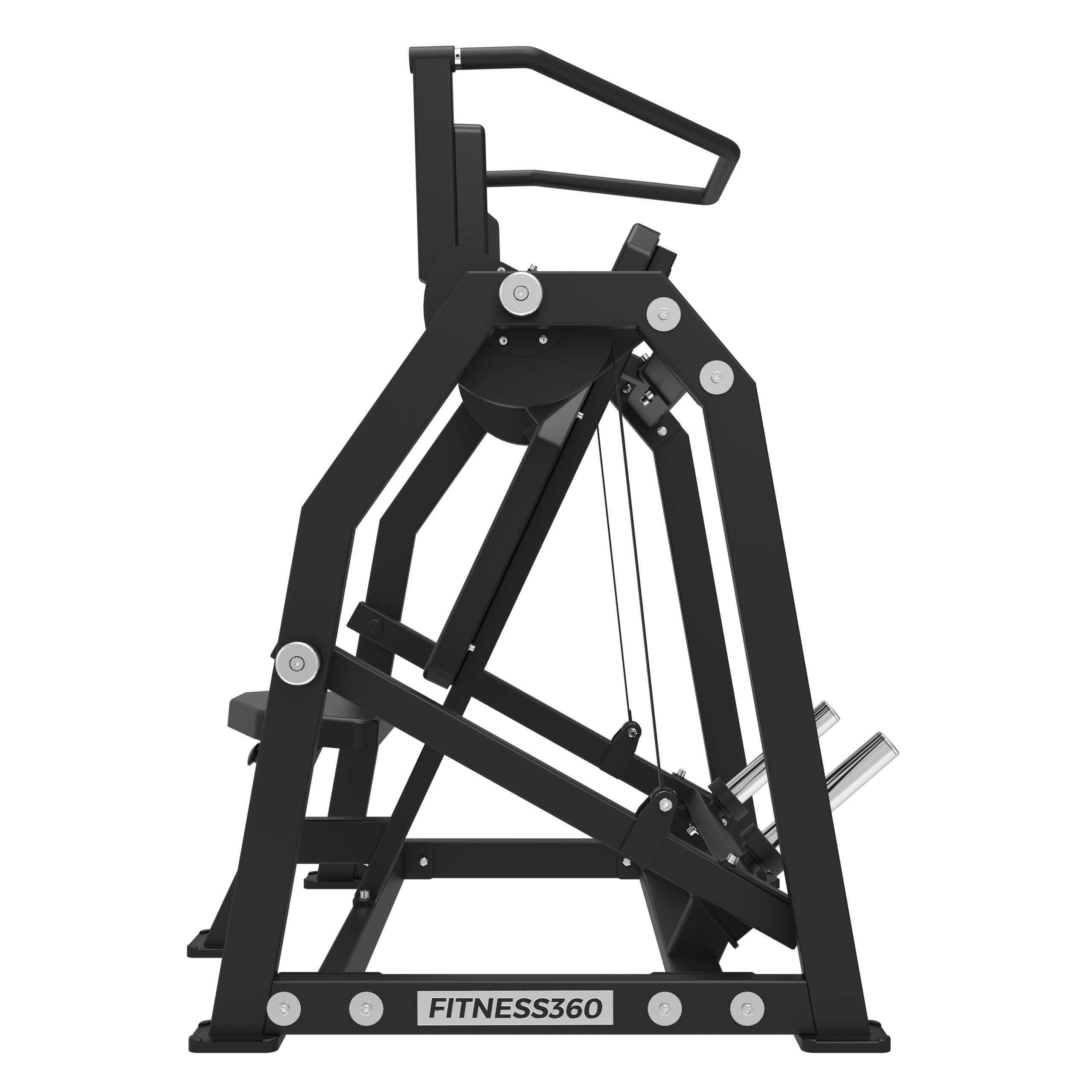Stellet er produceret i en solid stålkonstruktion med et laserskåret FITNESS360-logo. Sæderne er udført i et robust materiale med varmetrykt FITNESS360-logo. Maskinerne i denne serie er uden vægtmagasin, der er derimod påført nogle “load sleeves”, som giver brugeren fri mulighed til at vælge belastningen med vægtskiver.