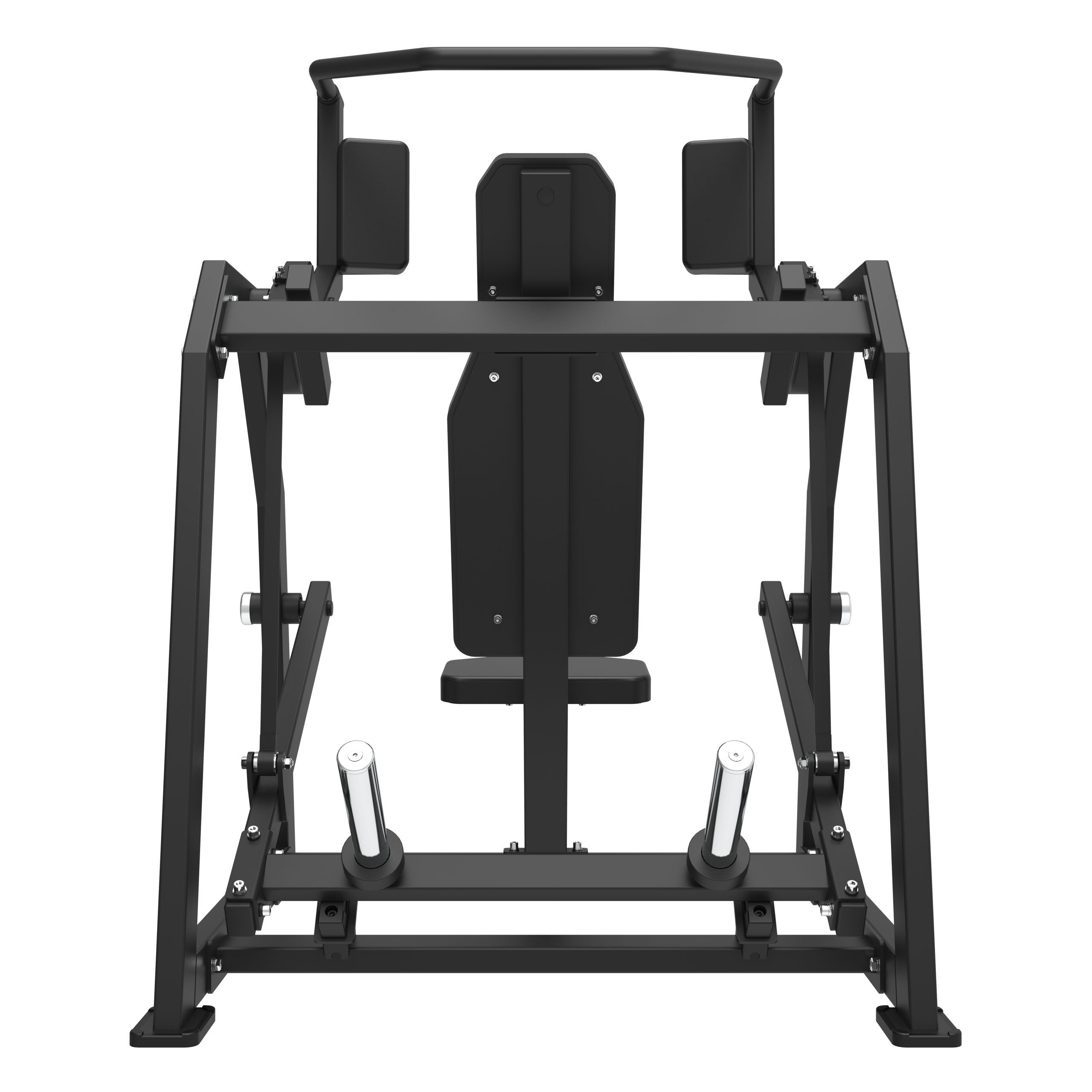 Vores professionelle Pullover maskine er designet til effektivt at målrette brystmusklerne i en siddende position. Maskinen er udstyret med en grebsposition der har anti-slip, samt puder til albuerne. Dertil justerbart sæde, hvilket giver brugeren mulighed for let at indstille startpositionen for øvelsen. Maskinen har to “load sleeves” på armene til belastning med alle Ø50 mm vægtskiver.