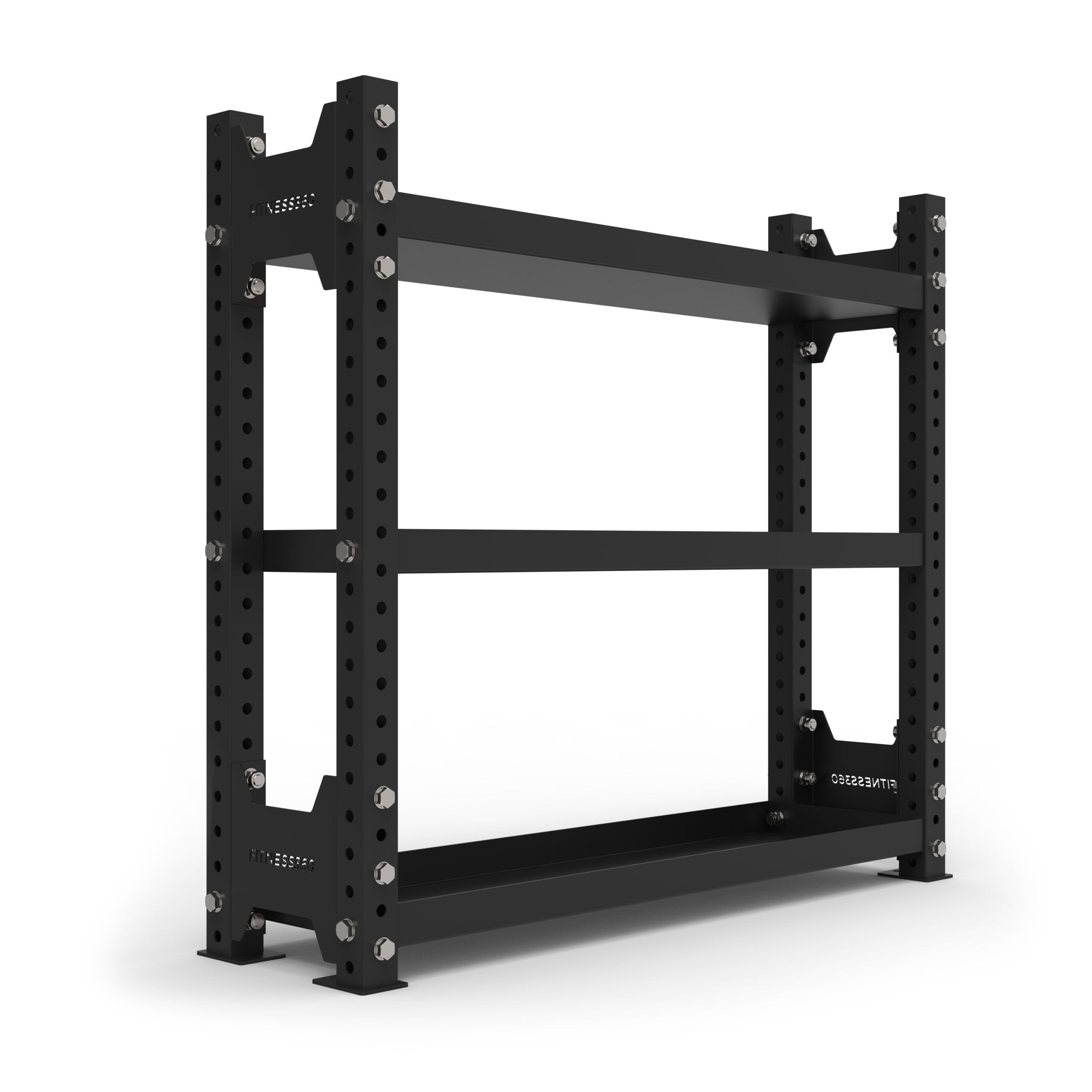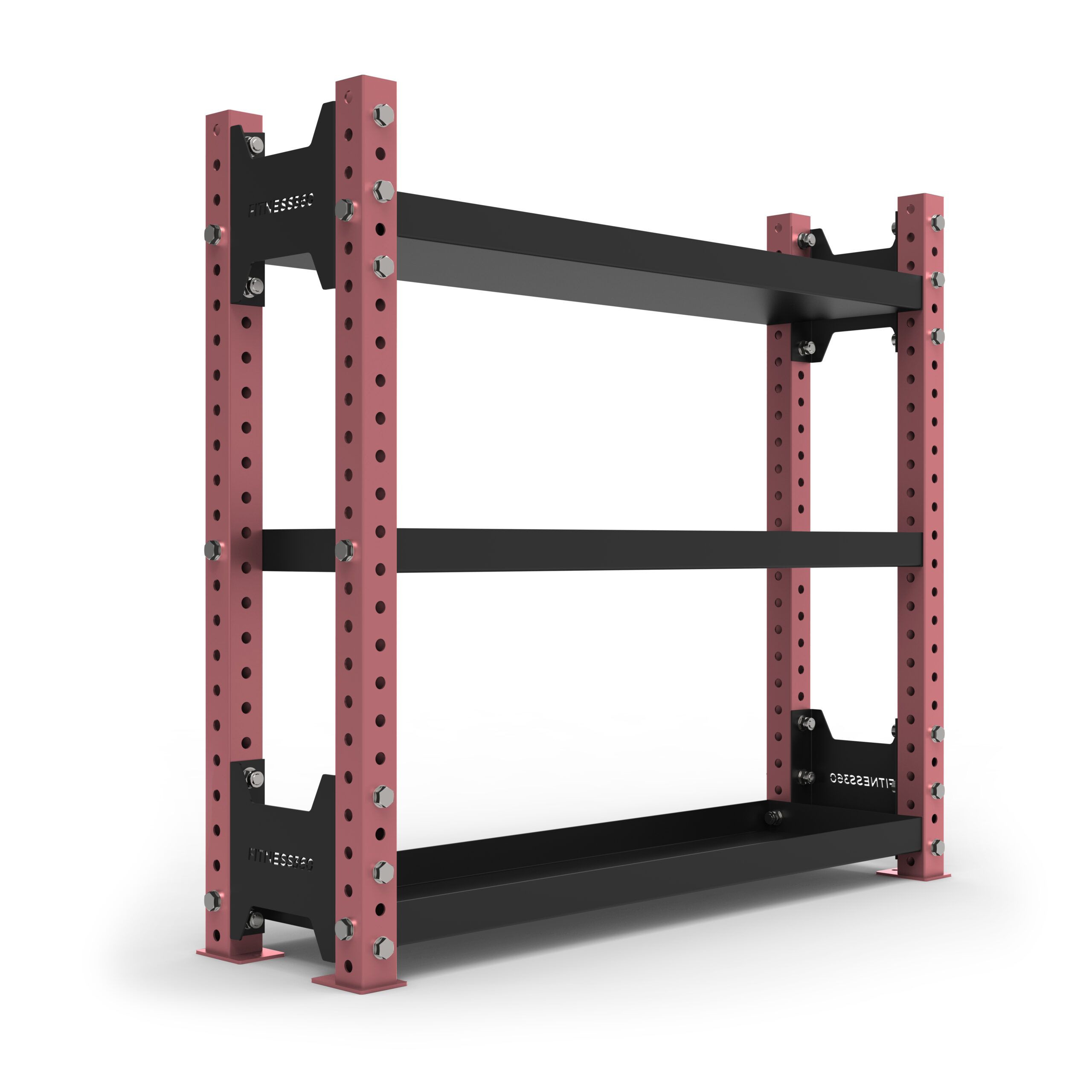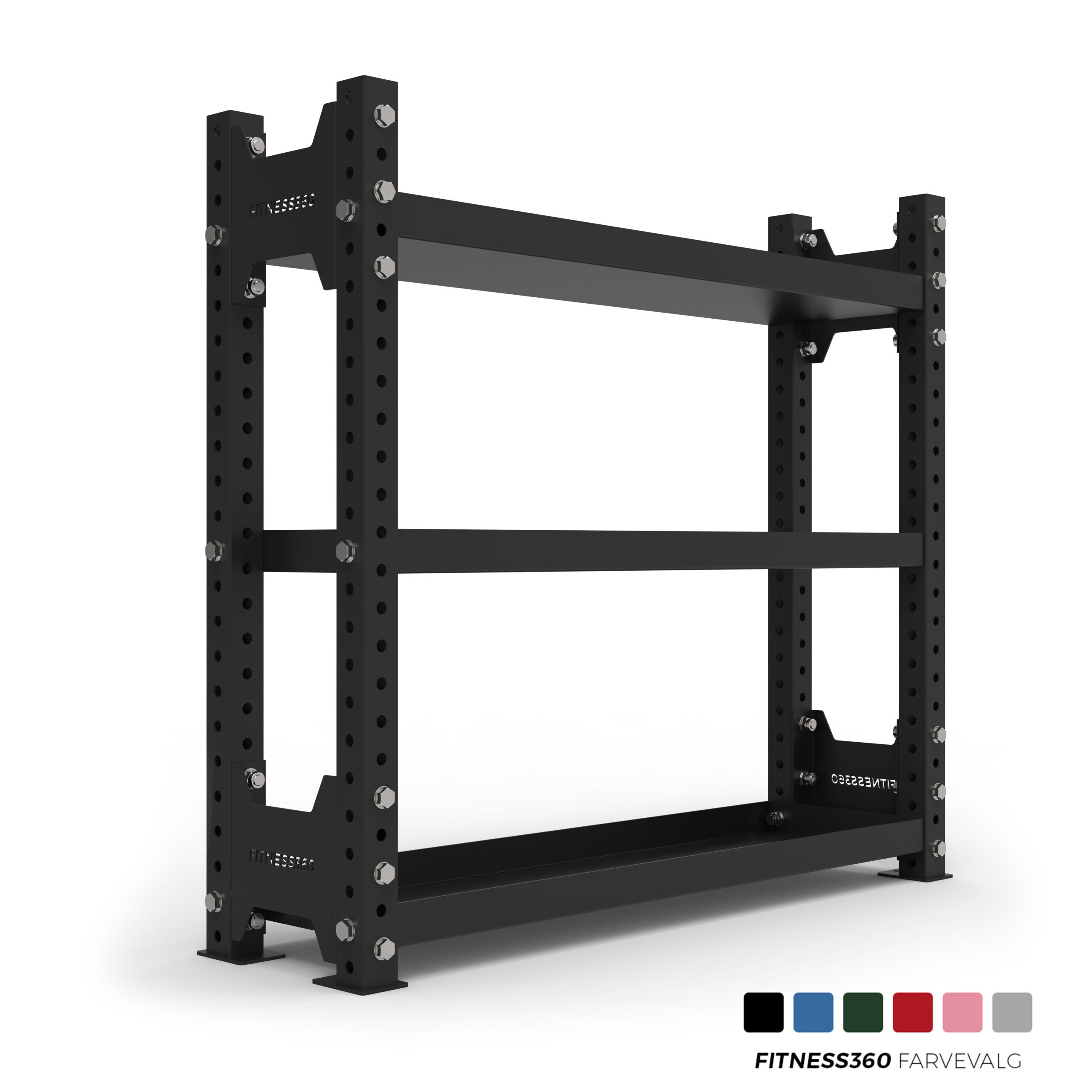 Reolsystem til kettlebells med 3 hylder. Ideel til opbevaring af kettlebells, grundet størrelsen på hylderne. Denne opbevaringsløsning er ideel til placering under spejle eller vinduer, grundet den lave højde på reolen. Denne reolsystem model fås også i en længere version på 180 cm i bredden. Du kan altid kombinere/tilføje flere korte sektioner, hvis behovet for mere opbevaring opstår.