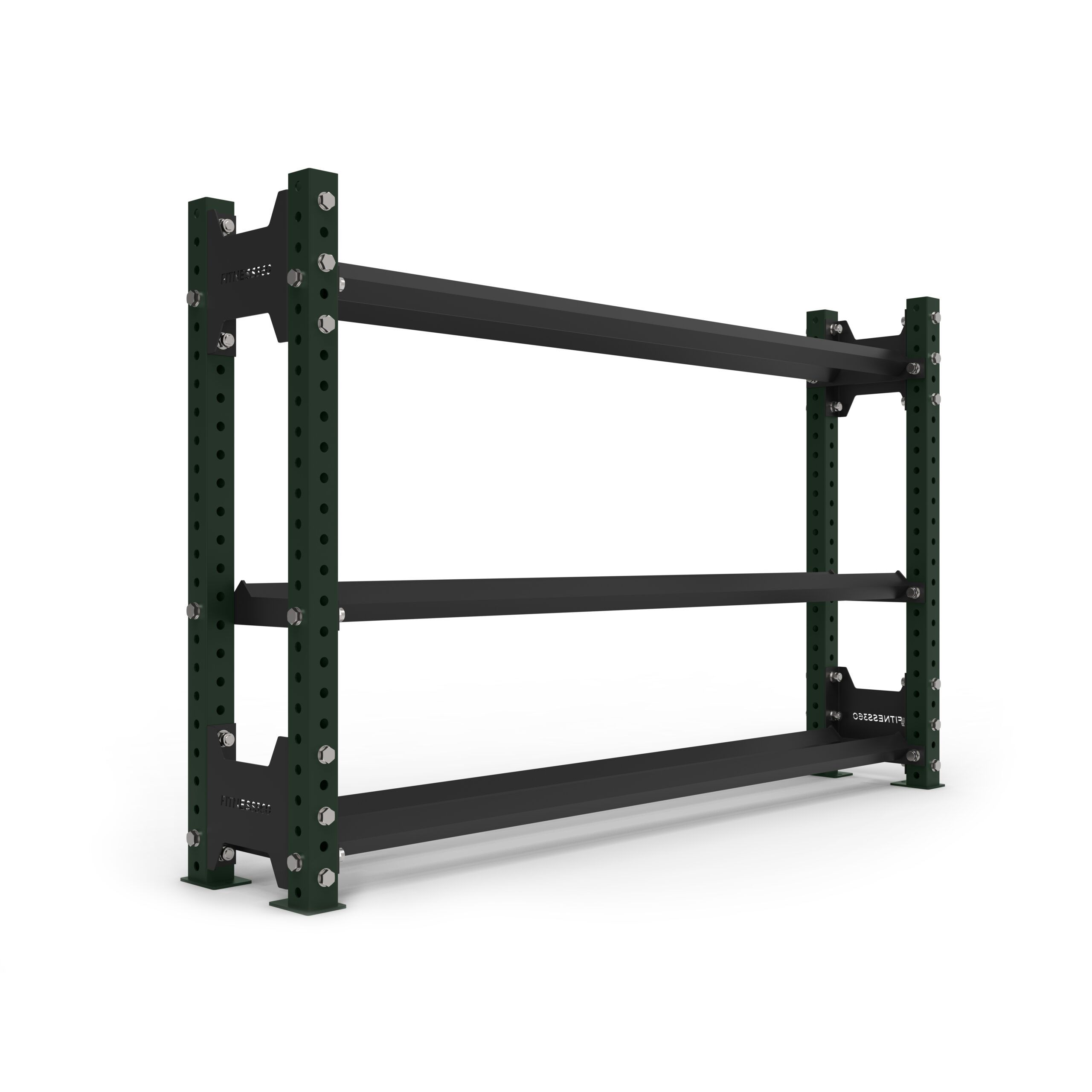 Reolsystem til vægtskiver og bolde med 3 hylder. Ideel til opbevaring af vægtskiver og bolde, grundet størrelsen på hylderne. Denne opbevaringsløsning er ideel til placering under spejle eller vinduer, grundet den lave højde på reolen. Dette reolsystem fås også i en kortere version på 120 cm i bredden. Du kan altid kombinere/tilføje flere korte sektioner, hvis behovet for mere opbevaring opstår.
