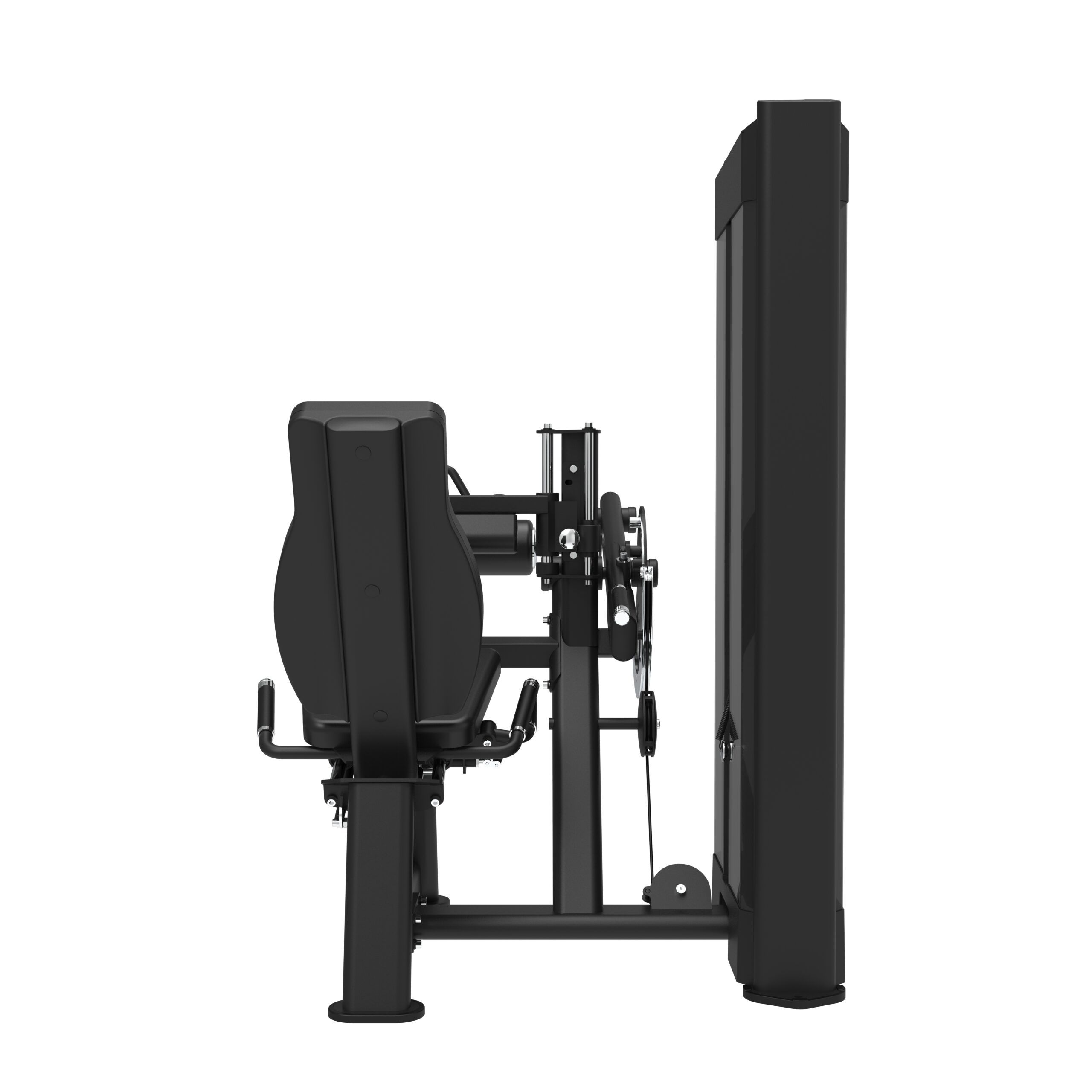 Vores professionelle Seated Leg Curl er designet til effektivt at målrette baglårets muskler i en siddende position. Maskinen er udstyret med et justerbart ryglæn som støtter ryggen og reducerer belastningen på lænden, så du kan fokusere på at udføre øvelsen korrekt. Maskinen har 5 justerbare startpositioner, således brugeren opnår stor fleksibilitet og selv kan bestemme bevægelsesområdet for øvelsen. Den justerbare rullepude gør maskinen brugervenlig, så den kan tilpasses til mange forskellige slags kropstyper.