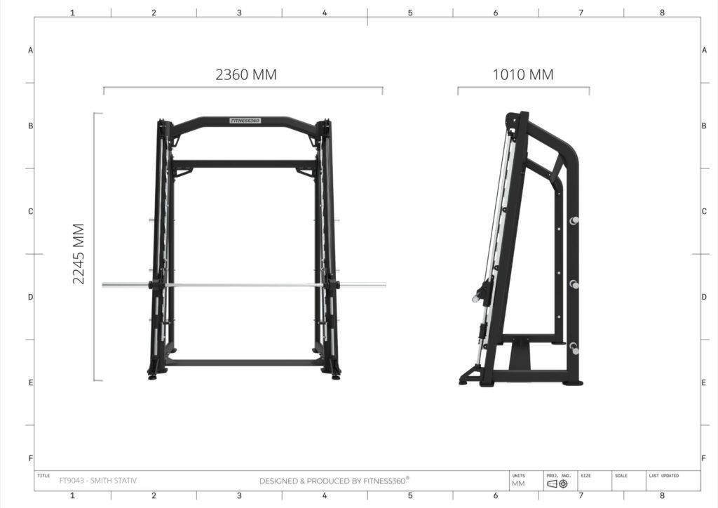 Vægtstangen passer til 50 mm vægtskiver. Du kan med fordel supplere dette Smith Stativ med vores Vægtskiver med Håndtag. Der er monteret i alt 6 vægtskiveholdere, 3 på hver side af stativet til opbevaring.