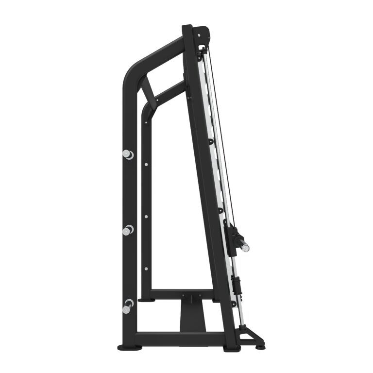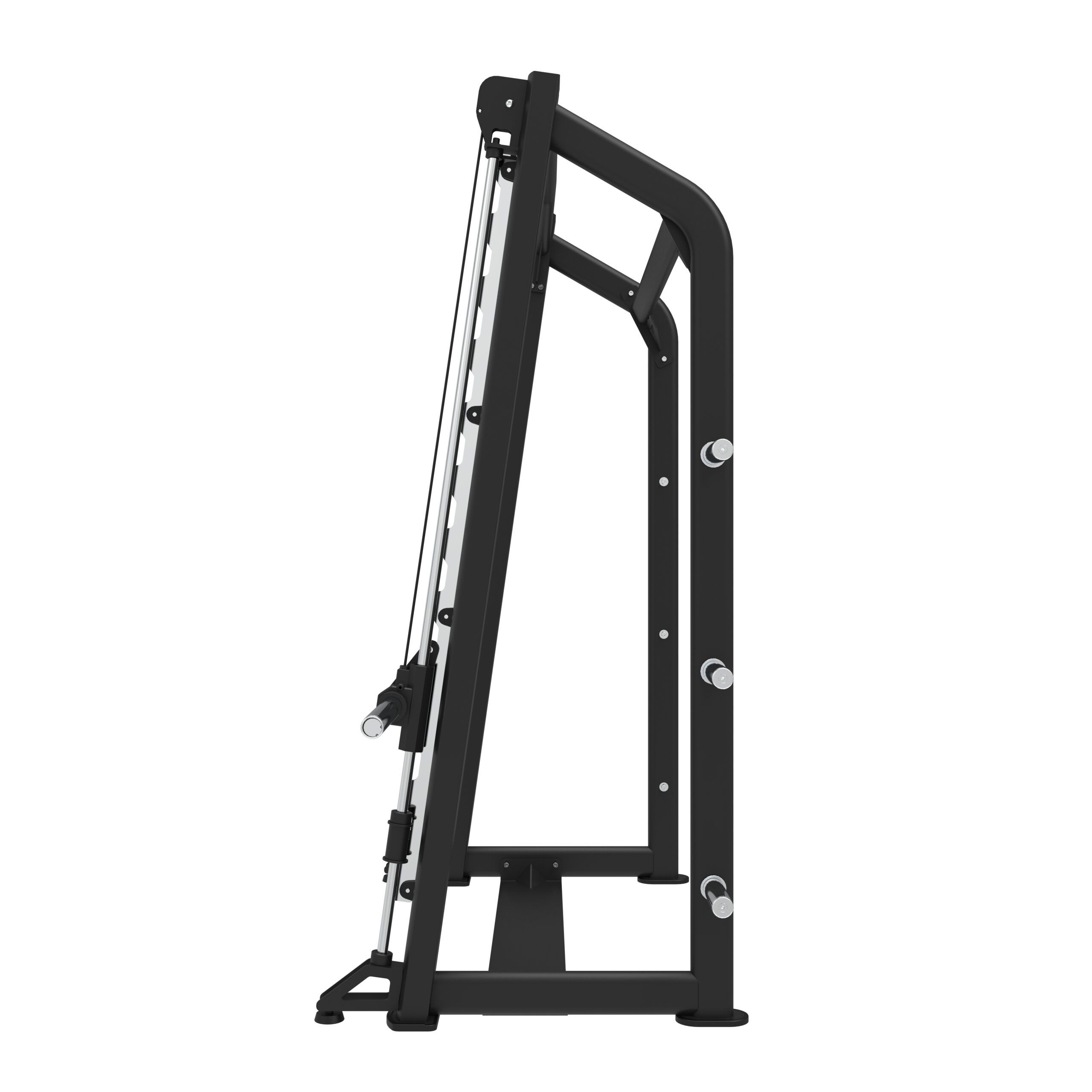 Vores professionelle Smith Stativ er designet til effektivt og brugervenligt at træne diverse øvelser i en kontrolleret og fast bevægelse. Vægtstangen er fastmonteret og bevæger sig i en kontrolleret bane, hvilket eliminerer de høje krav til balance og gør den ideel til f.eks. genoptræning eller nybegyndere. Stativet er udstyret med stærke kroge i 10 forskellige højder/positioner, hvor vægtstangen kan aflægges. Dertil 2 justerbare sikkerhedstop, der fungerer som en låsemekanisme for stangen.