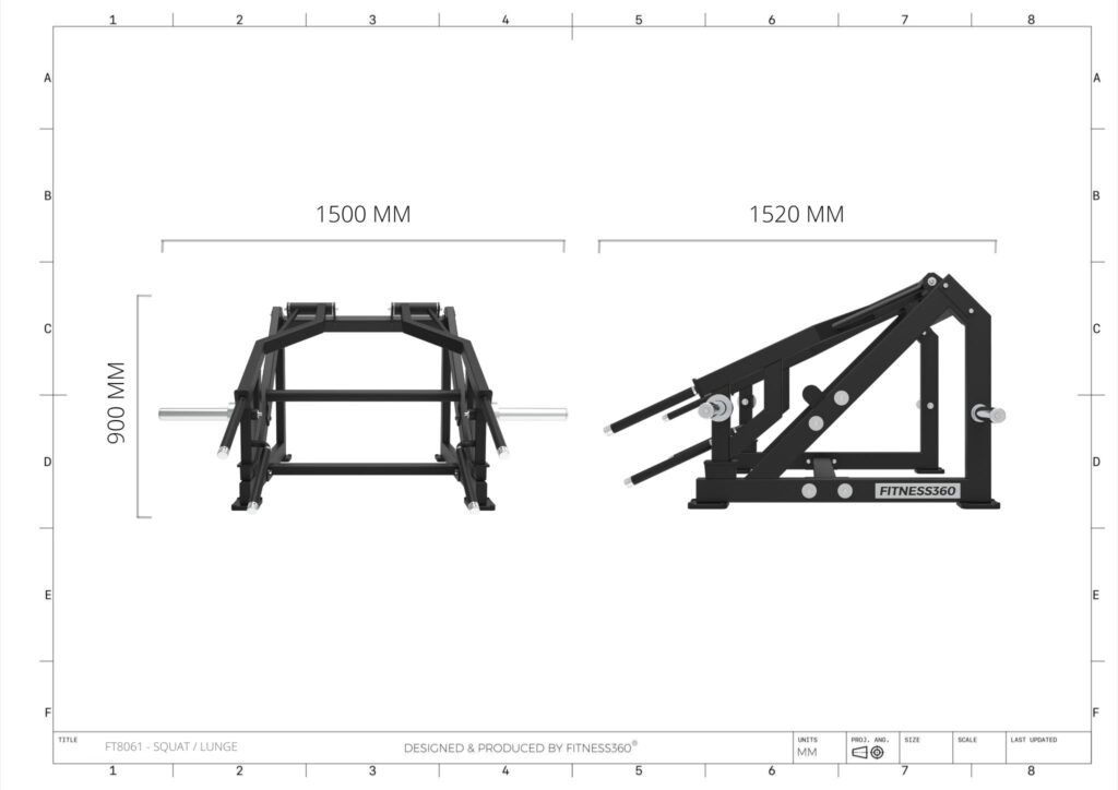 Stellet er produceret i en solid stålkonstruktion med et laserskåret FITNESS360-logo. Sæderne er udført i et robust materiale med varmetrykt FITNESS360-logo. Maskinerne i denne serie er uden vægtmagasin, der er derimod påført nogle “load sleeves”, som giver brugeren fri mulighed til at vælge belastningen med vægtskiver.