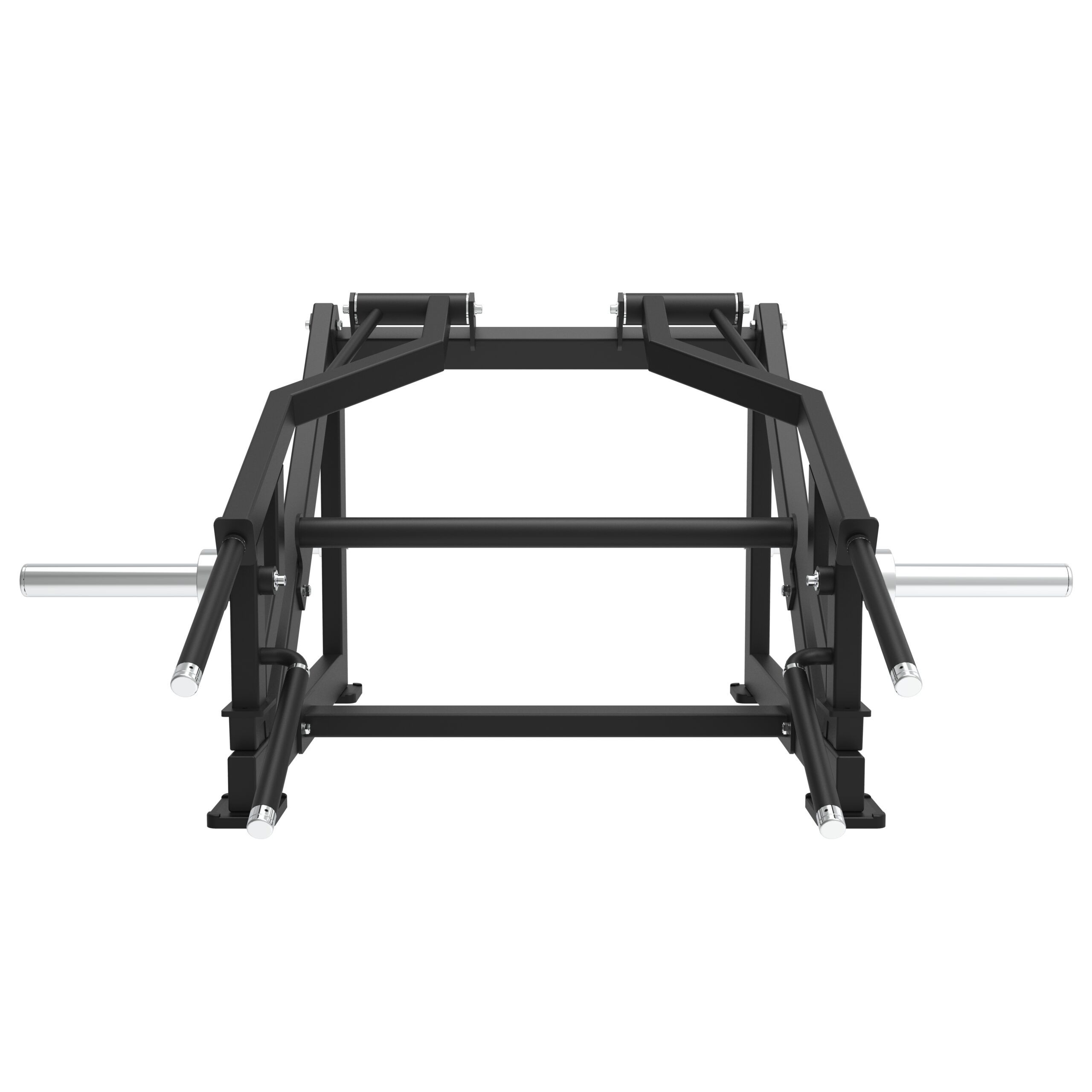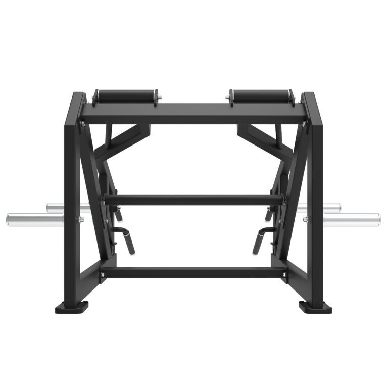 Vores professionelle Squat/Lunge maskine er designet til effektivt at målrette benmusklerne i en stående position. Fra squats til lunges, skuldertræk, dødløft og meget mere kan denne maskine imødekomme de mest krævende træningsbehov. Maskinen er udstyret med to grebspositioner med anti-slip, hvilket giver brugeren mulighed for at vælge sin foretrukne startposition. Maskinen har to “load sleeves” på armene til belastning med alle Ø50 mm vægtskiver. Der er desuden monteret to vægtskive pins på hver side af maskinen til opbevaring af vægtskiver.