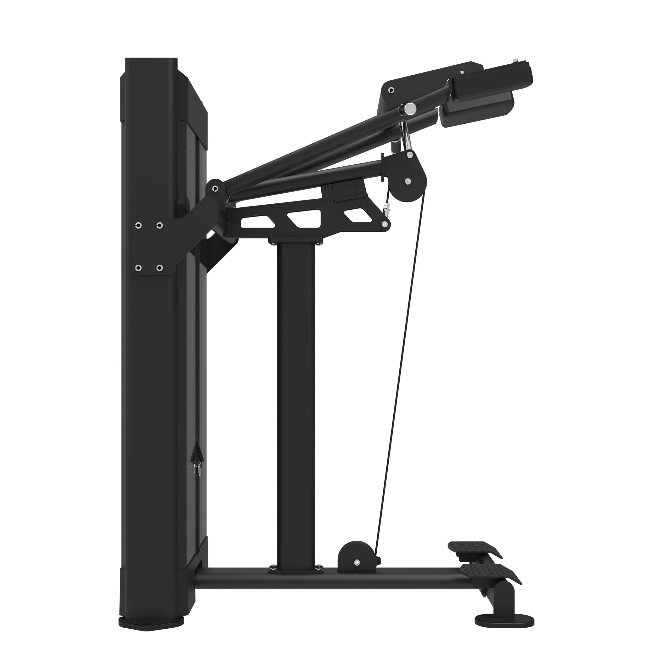 Vores professionelle Standing Calf er designet til effektivt at målrette lægmusklerne i en stående position. Maskinen er udstyret med skulderpuder, håndtag og skridsikre fodplader, der sikrer et ergonomisk design og en korrekt kropsposition. Øvelsen udføres ved at presse op mod de polstrede skulderpuder, samtidig med at hænderne holder fast i de ergonomisk placerede håndtag. Bevægelsen indebærer at løfte kroppen opad ved at trykke mod platformen med fødderne, hvilket aktiverer og træner lægmusklerne effektivt.