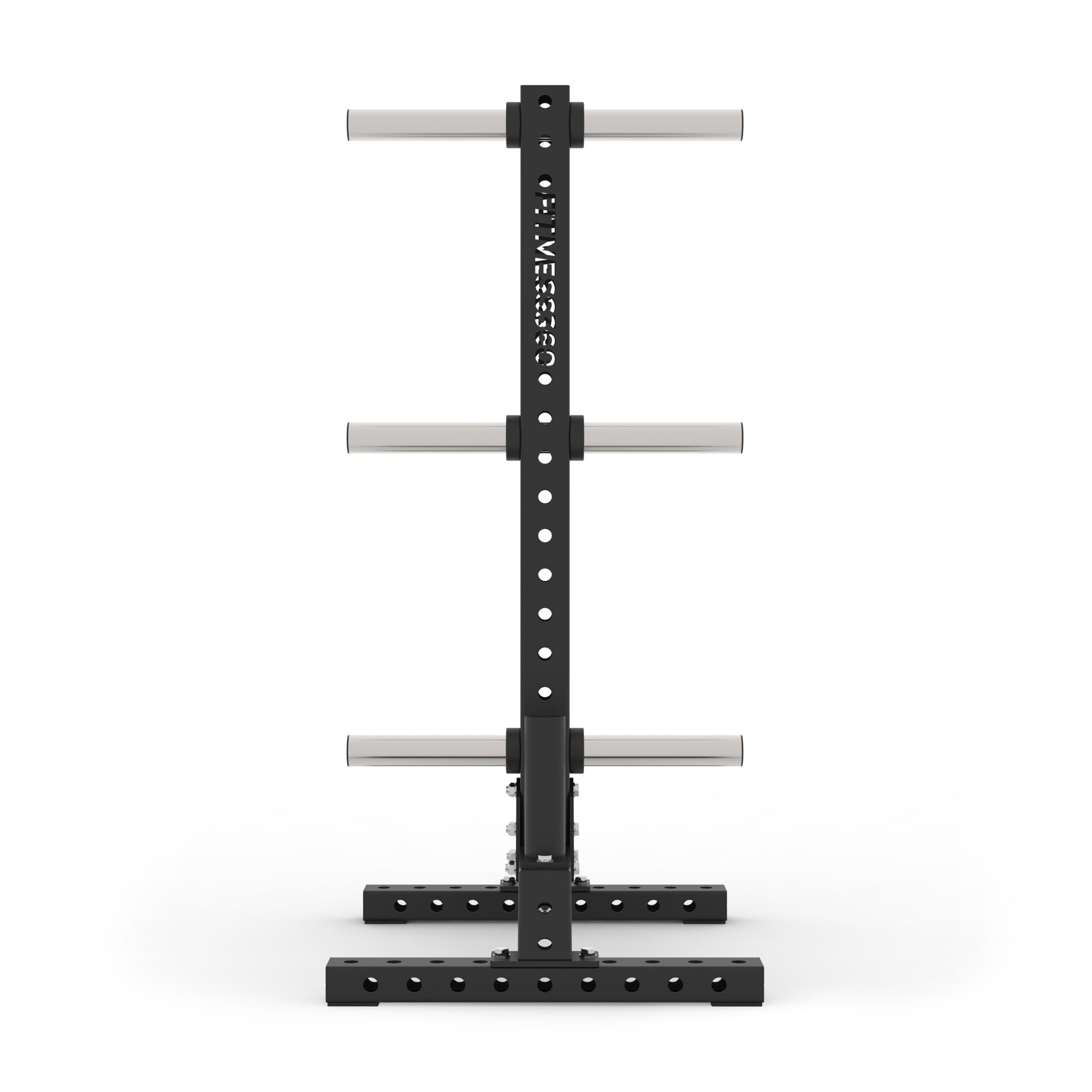 Stativet har mulighed for opbevaring af vægtskiver på alle sider. Dertil er der mulighed for opbevaring af 2 stk. olympiske vægtstænger.