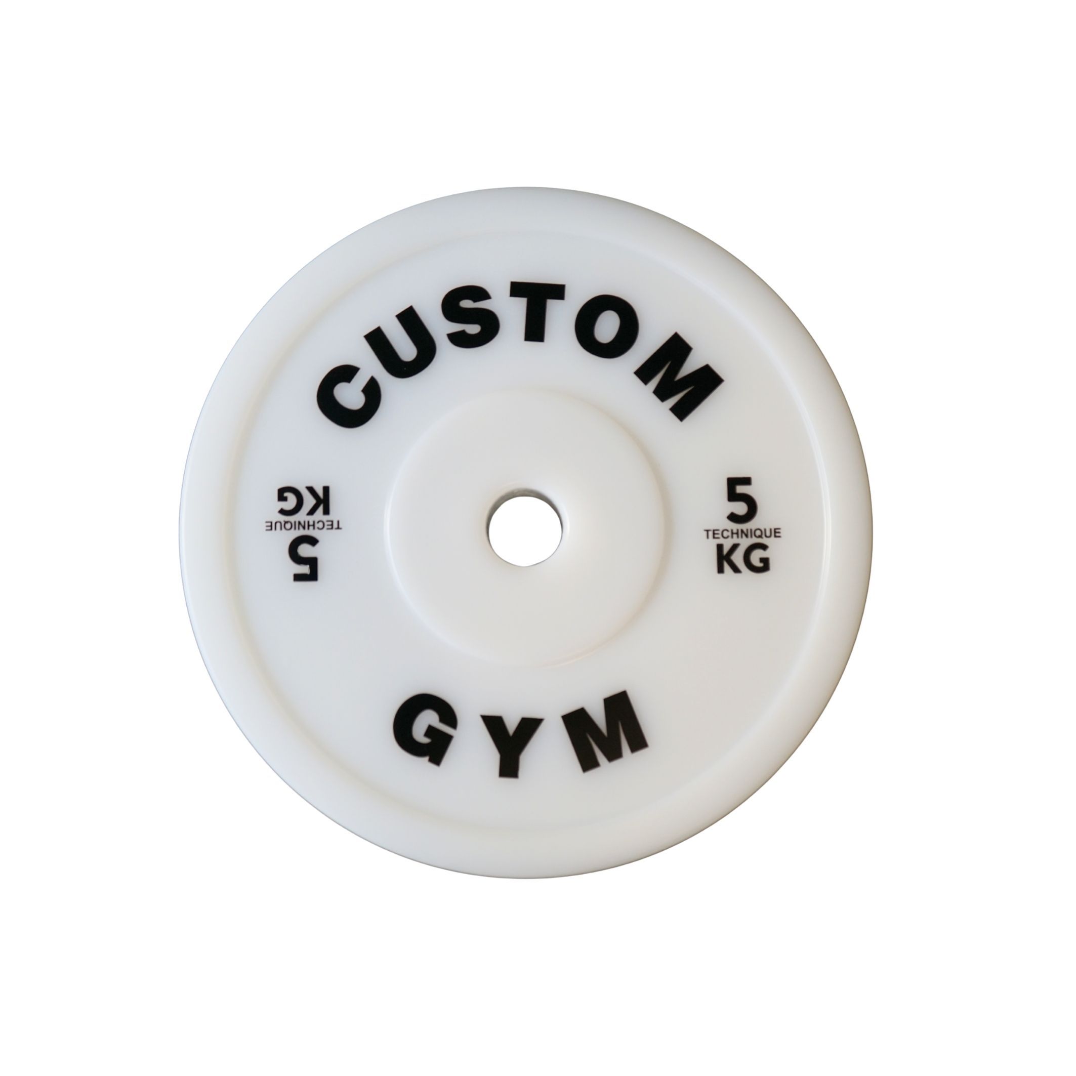 Hvid teknikskive på 5 kg. Vores Technique Plates – Teknikskiver fra MM Custom Gym er lavet af høj densitets polyuretan (HDPE Plastik). Den udvendige diameter på alle skiverne er 450 mm – samme diameter som standard olympiske bumper plates, bare betydeligt lettere, da disse er lavet af plastik og er tomme indvendigt. Den perfekte skive til teknik træning for børn eller begyndere til vægtløftning, som ønsker at få stangen op i normal højde for sine løft, uden at tilføje unødvendig vægt. Skiverne passer til alle vores vægtstænger, men er særdeles velegnet til vores 2,5 eller 10 kg teknik vægtstang. Med vores store Teknikskiver får du altså et produkt, der øver og forbedrer korrekt vægtstangsteknik uden risiko for skade.