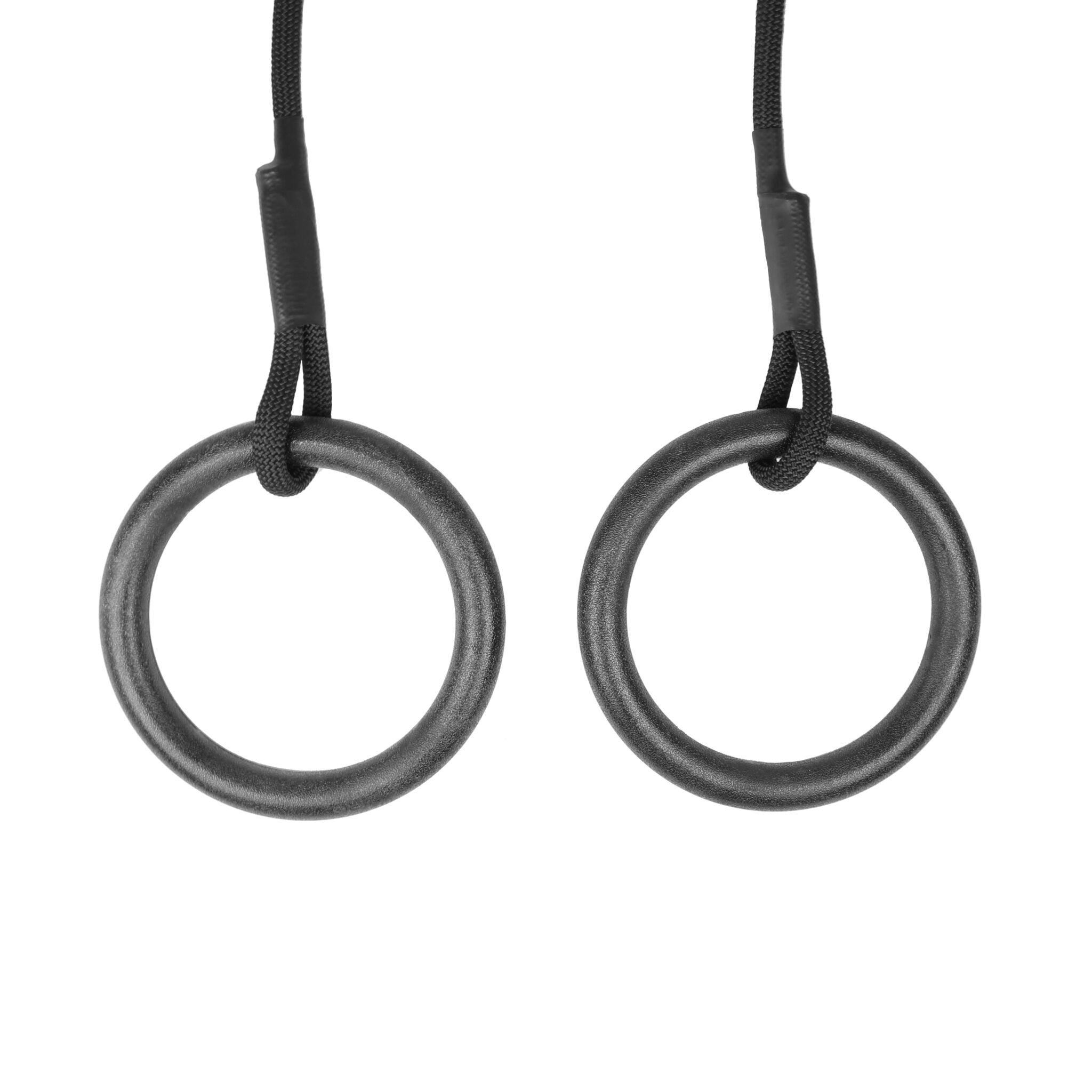 Udendørs Gymnastikringe fra Fitness360. Ringene er produceret i sort plastik og har et lukket og fast nylonreb-ophæng. Særdeles velegnet til udendørs områder med gymnastik, træning eller funktionel træning. Stropperne er lukkede, så der ikke kan komme fingre i klemme, og ringene er derfor godkendte til offentlige legepladser og træningsområder.