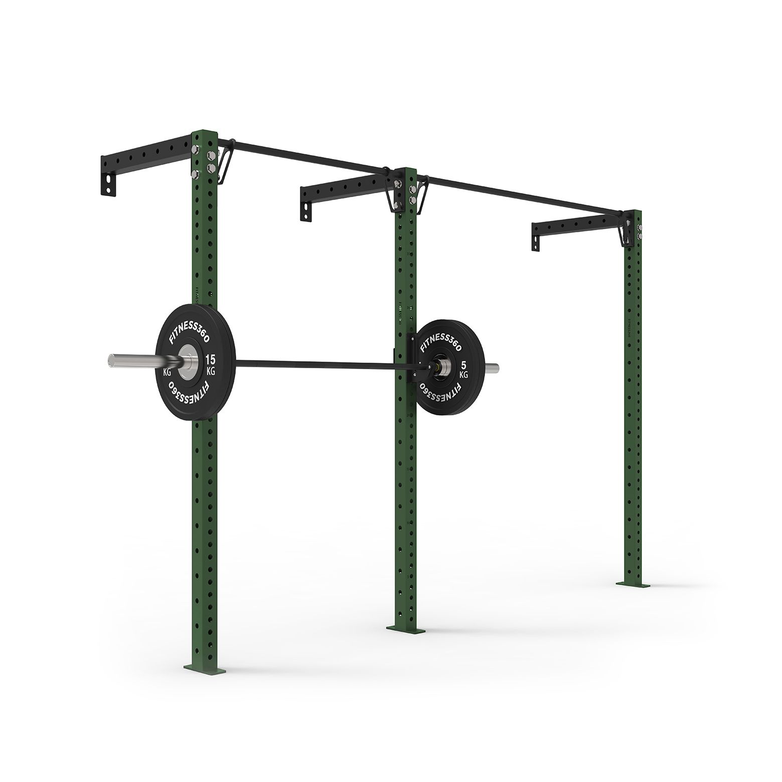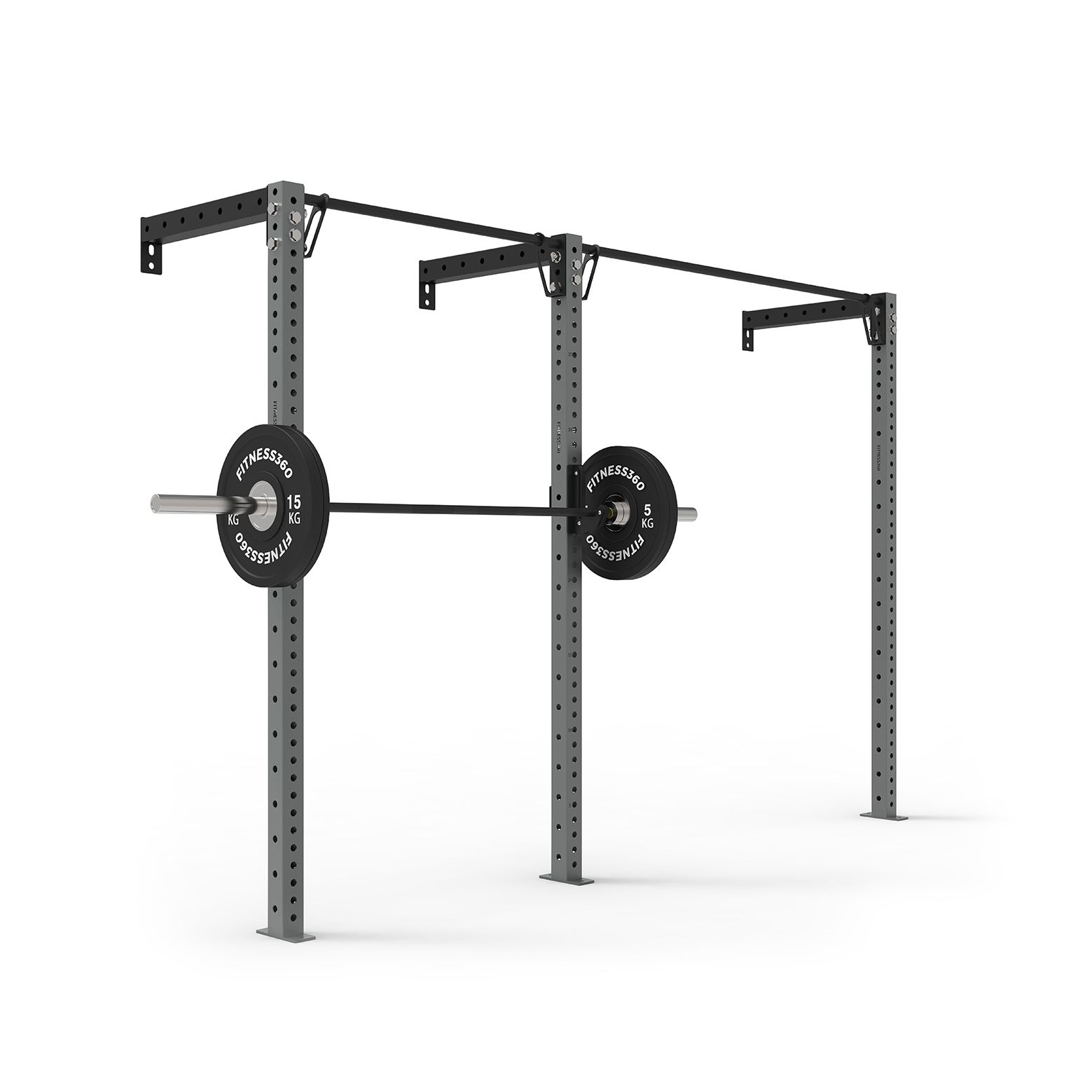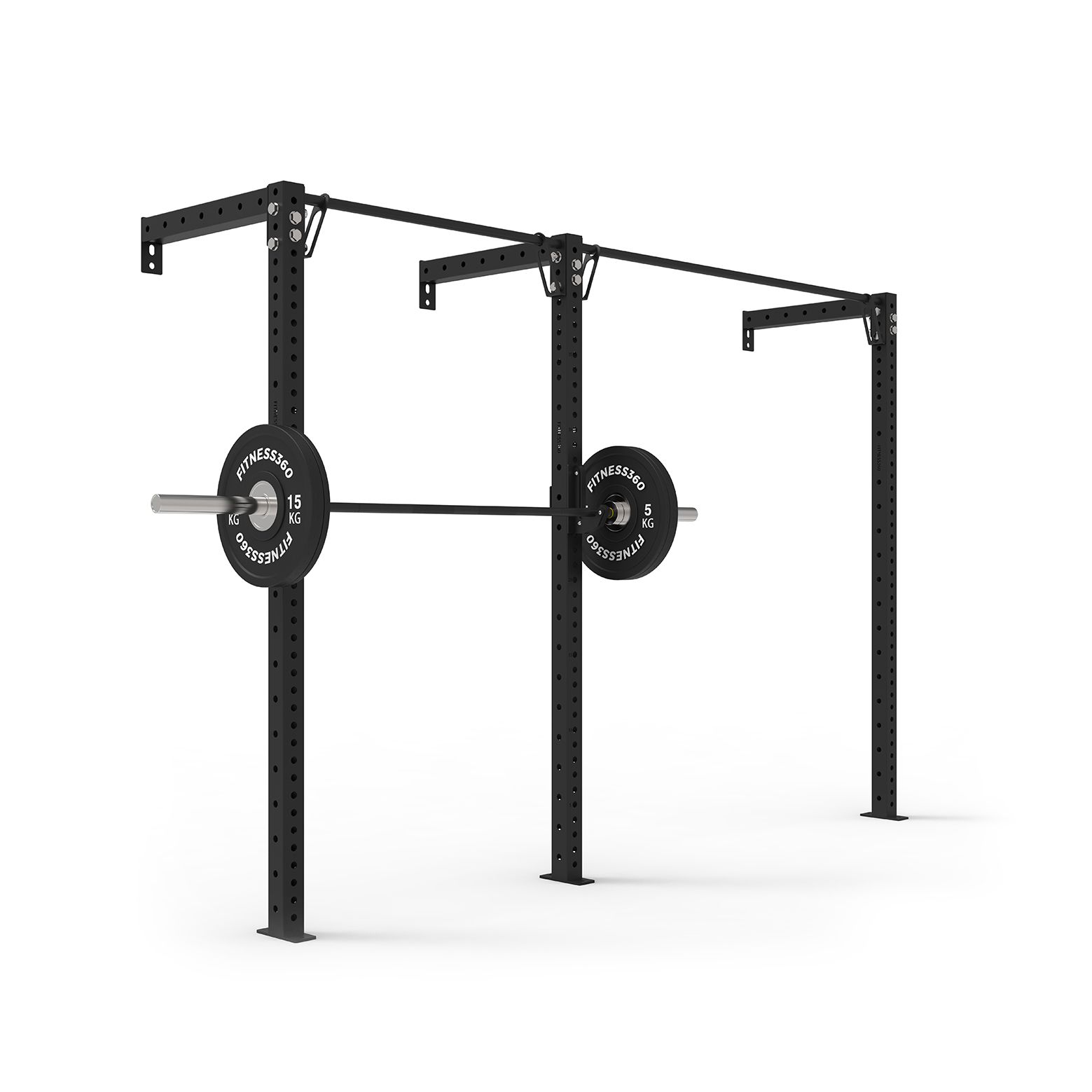 Dette vægmonteret rig består af 3 stk. stolper på 216 cm, 1 stk. pull up bar på 108 cm, 1 stk. pull up bar på 180 cm og 3 stk. crossbars på 67,5 cm. De inderste bars skal monteres i væggen og fungerer som stabilisatorer.