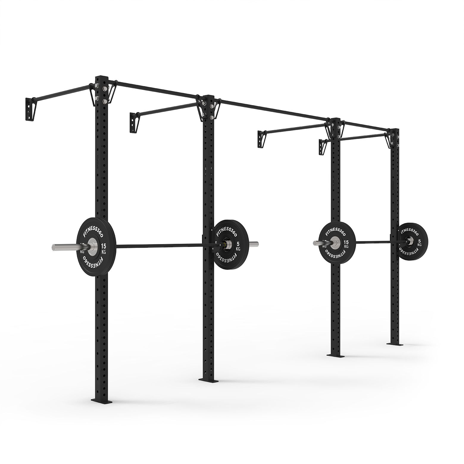 I denne vægmonterede konstruktionsserie giver vi dig flere standard varianter. Som udgangspunkt anbefaler vi 1 squat station for hver bruger som skal bruge stativet samtidig. Dette er en tommelfingerregel i forhold til plads mellem brugerne i forskellige øvelser som squat, dip, landmine core træning, kast af wallballs til target m.m.. Skal stativer kun bruges til simple pull up øvelser, TRX træning eller lignende, kan man derimod gøre brug af størstedelen af pull up barene samtidig, her vil man så tage udgangspunkt i 1 bruger pr. pull up bar. Har du brug for flere stationer, kan du se vores andre vægmonterede varianter her