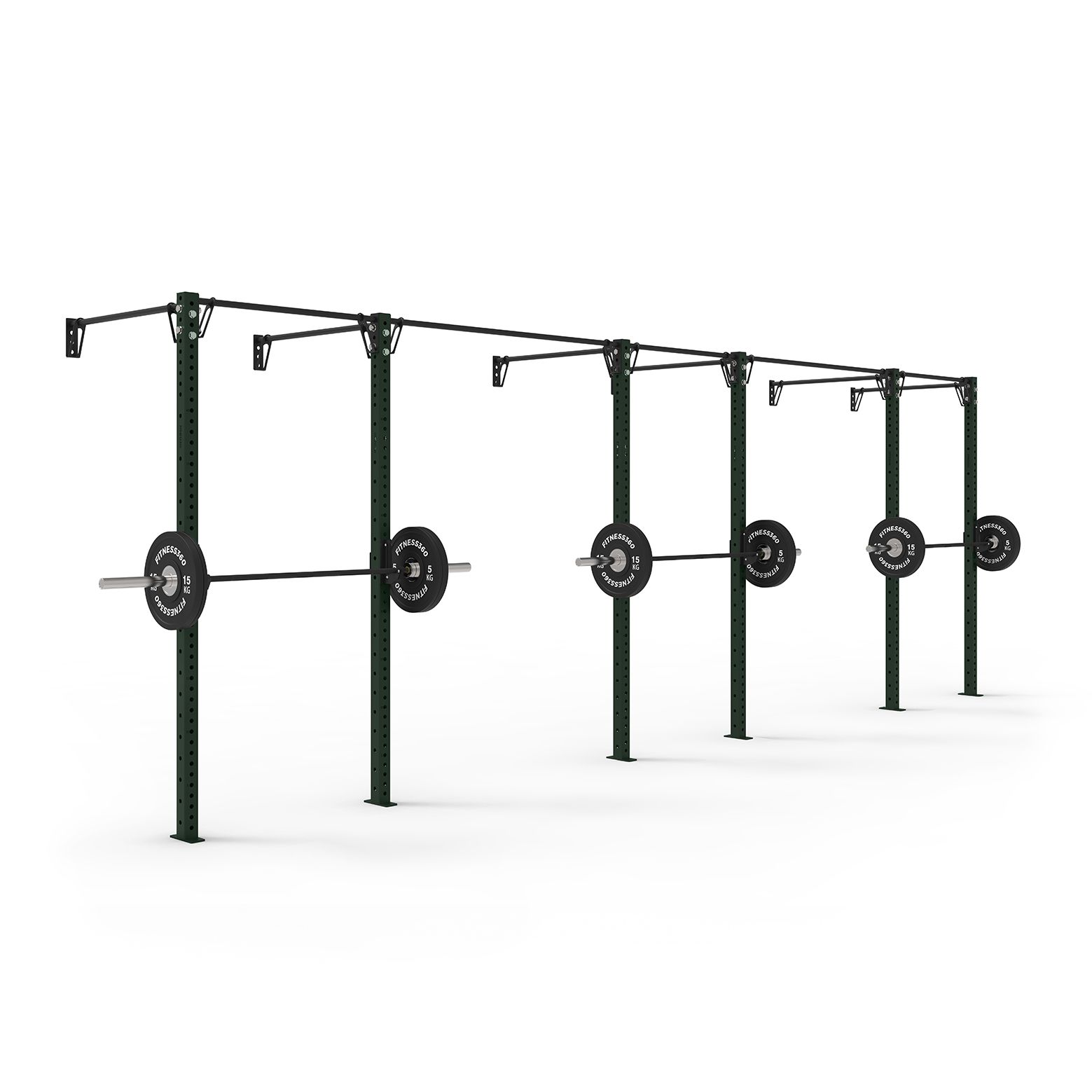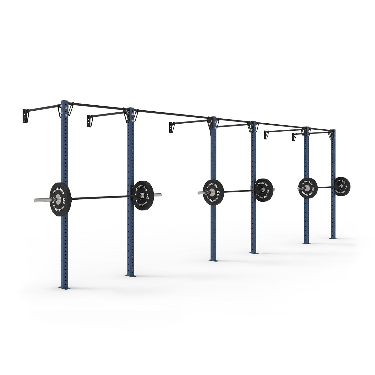 I denne vægmonterede konstruktionsserie giver vi dig flere standard varianter. Som udgangspunkt anbefaler vi 1 squat station for hver bruger som skal bruge stativet samtidig. Dette er en tommelfingerregel i forhold til plads mellem brugerne i forskellige øvelser som squat, dip, landmine core træning, kast af wallballs til target m.m.. Skal stativer kun bruges til simple pull up øvelser, TRX træning eller lignende, kan man derimod gøre brug af størstedelen af pull up barene samtidig, her vil man så tage udgangspunkt i 1 bruger pr. pull up bar. Har du brug for flere stationer, kan du se vores andre vægmonterede varianter her