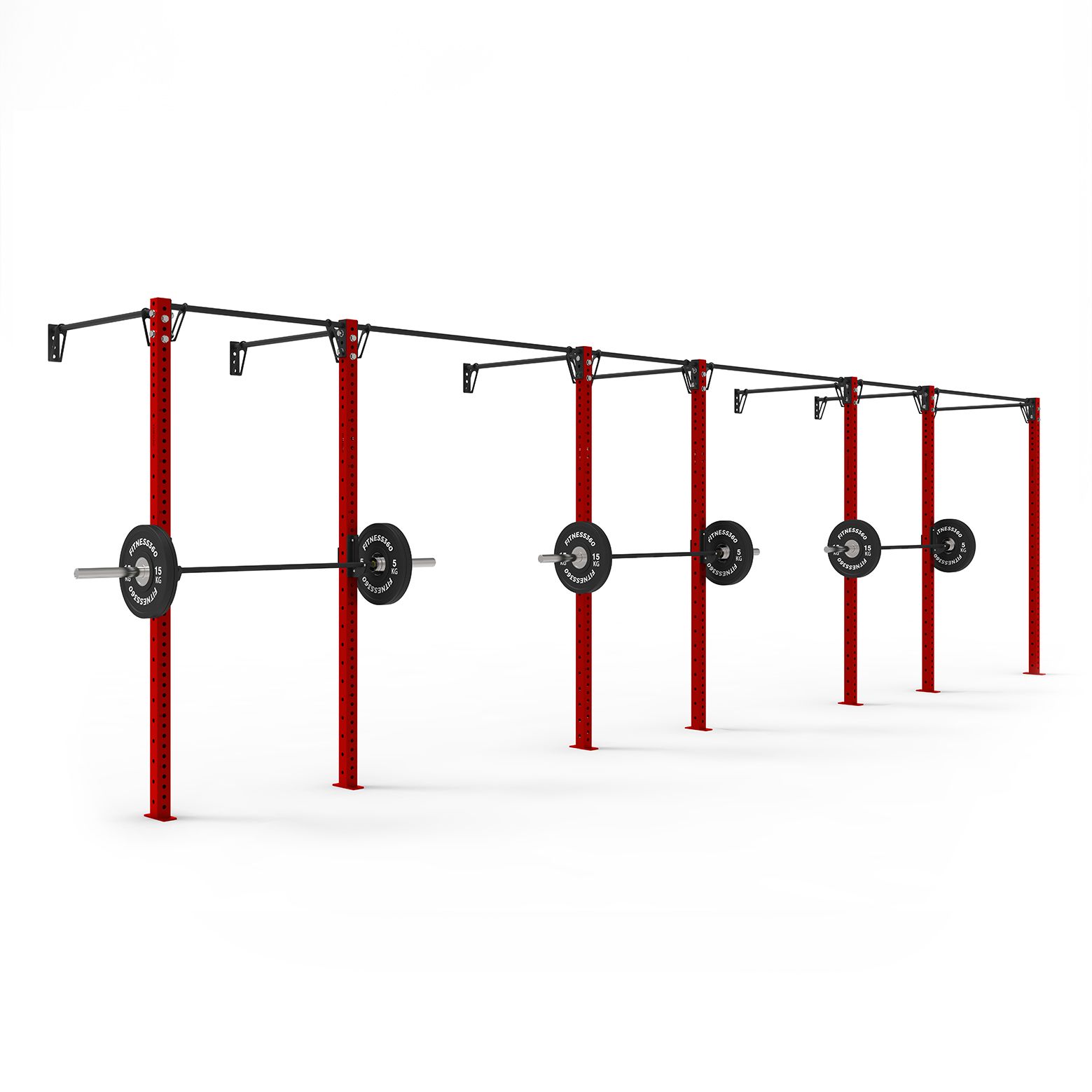 Dette vægmonteret rig består af 7 stk. stolper på 256 cm, 10 stk. pull up bars på 108 cm og 3 stk. pull up bars på 180 cm. De inderste bars skal monteres i væggen og fungerer som stabilisatorer.