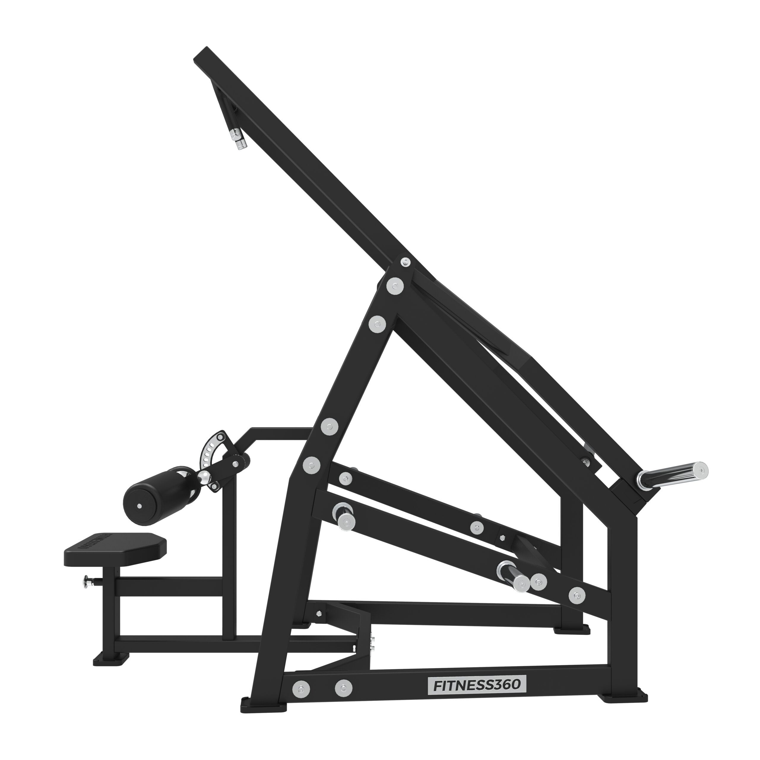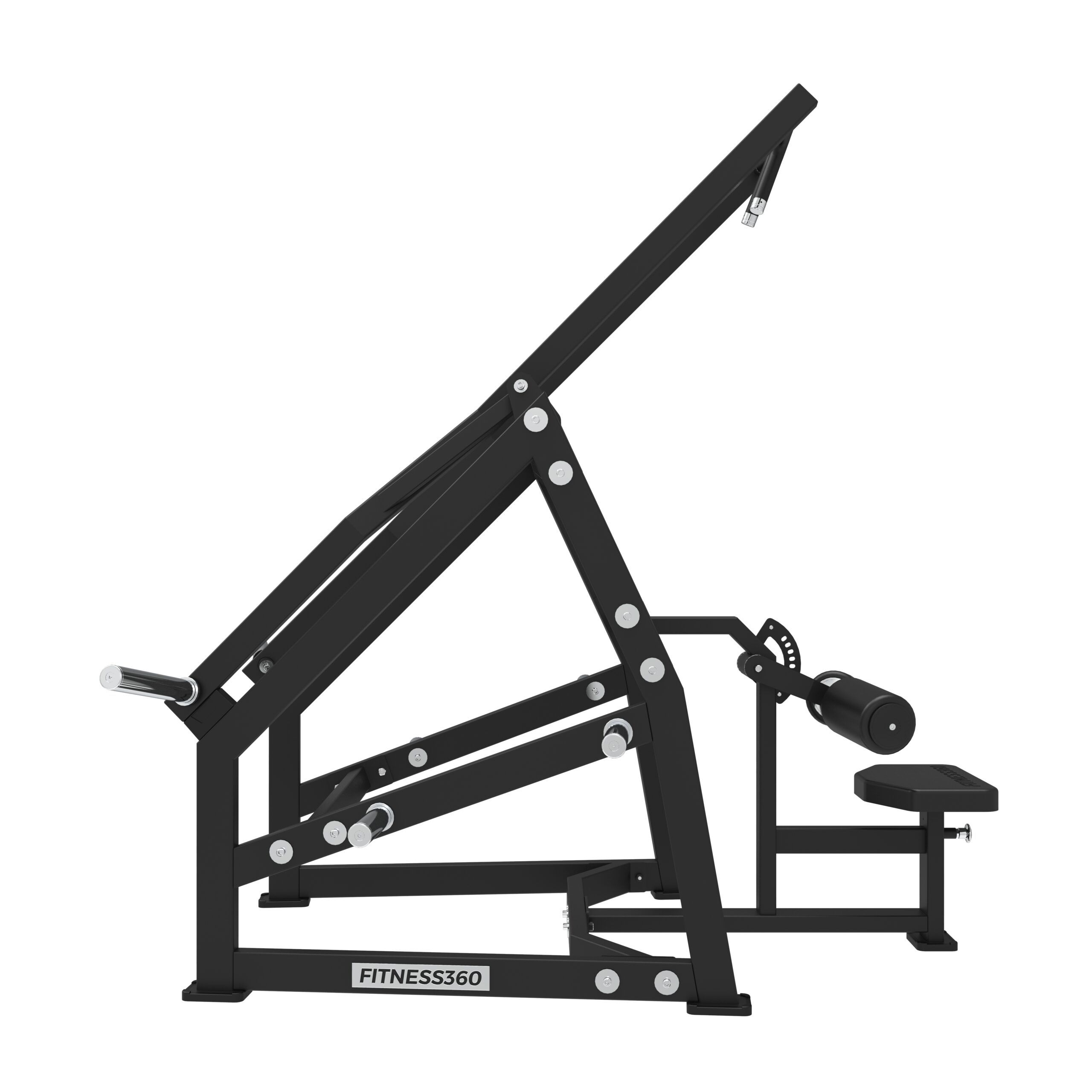 Stellet er produceret i en solid stålkonstruktion med et laserskåret FITNESS360-logo. Sæderne er udført i et robust materiale med varmetrykt FITNESS360-logo. Maskinerne i denne serie er uden vægtmagasin, der er derimod påført nogle “load sleeves”, som giver brugeren fri mulighed til at vælge belastningen med vægtskiver.